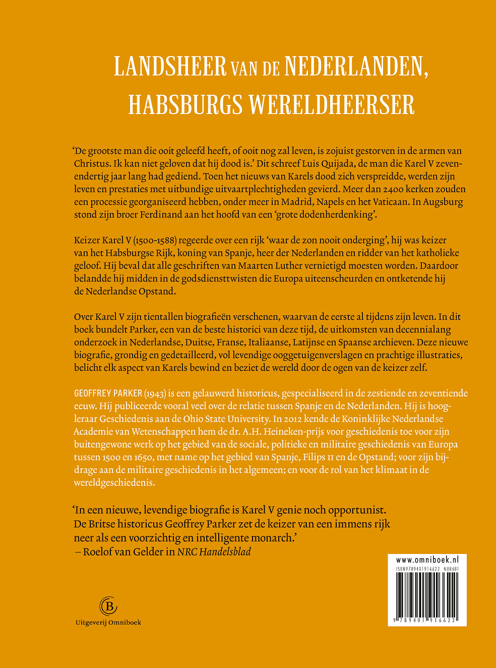 Keizer Karel V (1500-1558) was de machtigste vorst die de Lage Landen ooit hebben gekend. Vijfhonderd jaar geleden verordineerde hij dat alle geschriften van Maarten Luther vernietigd moesten worden. De in Gent geboren keizer typeerde zichzelf als keizer van het Heilige Roomse en het Habsburgse Rijk, koning van Spanje, heer der Nederlanden en ridder van het katholieke geloof. Er zijn al tientallen biografieën over Karel V verschenen – de eerste daarvan al tijdens zijn leven –, maar deze van Parker bundelt de uitkomsten van decennialang onderzoek door een van de beste historici van deze tijd. Een nieuw standaardwerk.