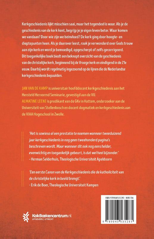Kerkgeschiedenis voor iedereen van Jan van de Kamp en Almatine Leene biedt een beknopt overzicht van de geschiedenis van de christelijke kerk, beginnend bij de Vroege kerk en eindigend in de 21e eeuw. Daarbij ligt de nadruk op de lijnen die de Nederlandse kerkgeschiedenis bepaalden.