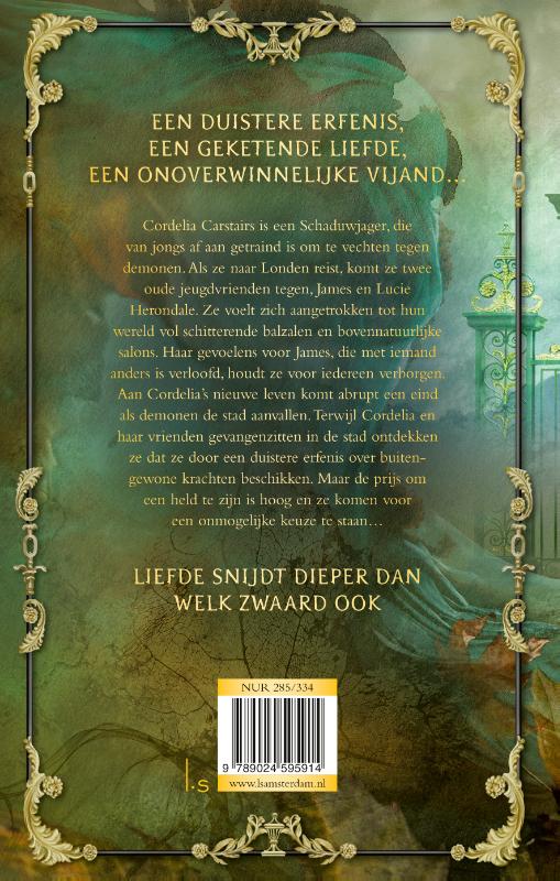 Cordelia Carstairs is een Schaduwjager, een strijder die getraind is om te vechten tegen demonen. Als haar vader beschuldigd wordt van een verschrikkelijke misdaad, reist ze af naar Londen om de reputatieschade van haar familie zoveel mogelijk in te perken. Daar komt ze twee jeugdvrienden tegen en ze voelt zich aangetrokken tot hun wereld vol schitterende balzalen, geheime opdrachten en bovennatuurlijke salons met vampiers, heksenmeesters en goochelaars. Al die tijd houdt ze haar geheime liefde voor James, die met iemand anders is verloofd, verborgen. Dan vallen demonen de stad aan en Cordelia ontdekt dat zij en haar vrienden iets te maken hebben met een duistere erfenis…