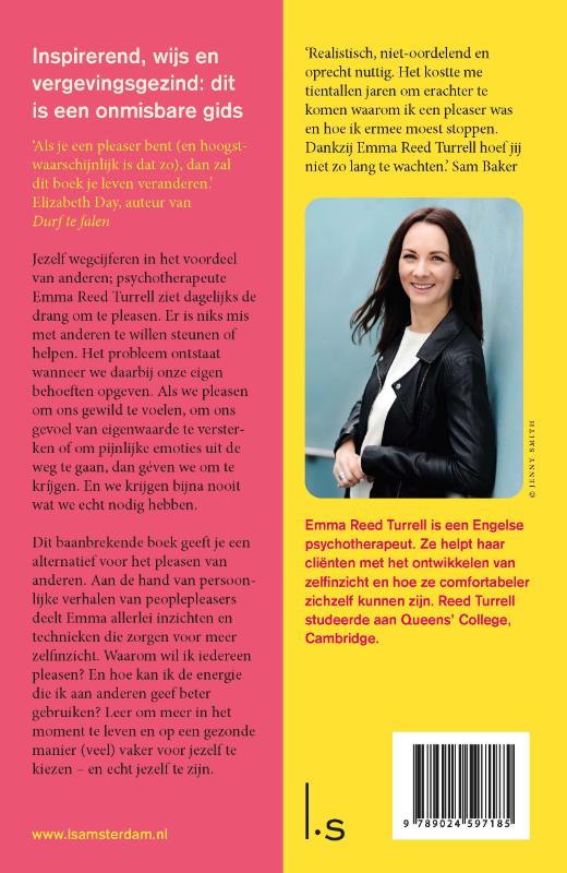 Als psychotherapeute ziet Emma Reed Turrell dagelijks de drang om te ‘people-pleasen’: onszelf wegcijferen ten voordele van anderen. Aan de hand van persoonlijke verhalen van allerlei soorten mensen, die allemaal op hun eigen manier last hebben van die drang, doet Emma een heleboel inzichten en technieken uit de doeken die lezers helpen om meer in het moment te leven en op een gezonde manier meer voor zichzelf te kiezen. Haar uitgangspunt is dat als we beter voor onszelf zorgen, we ook anderen beter kunnen helpen.