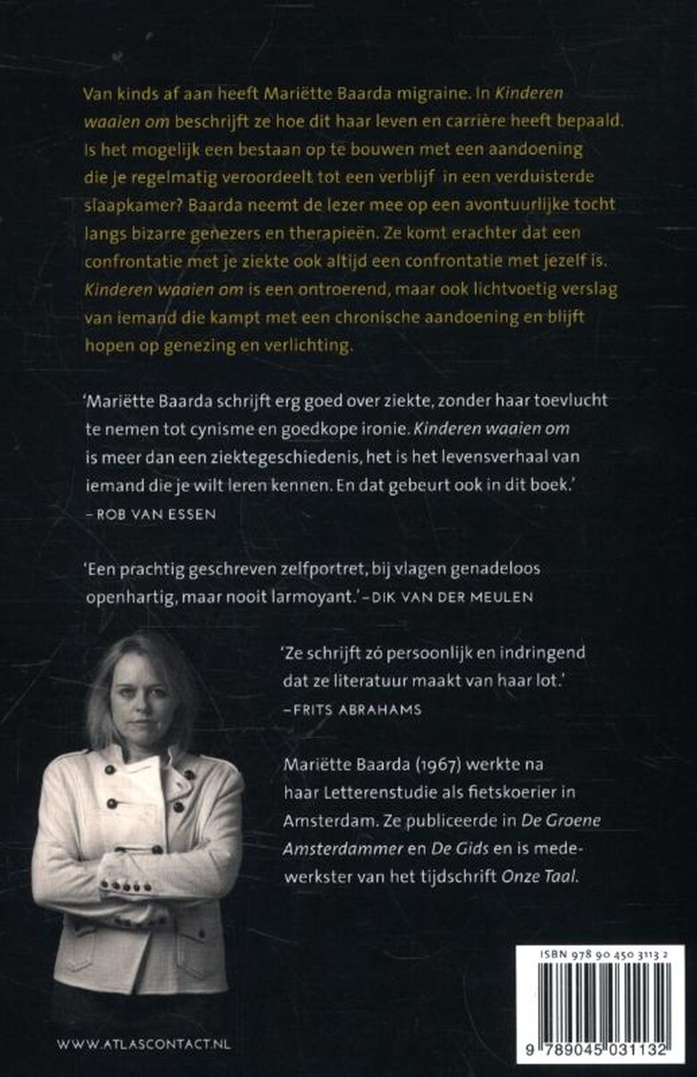Van kinds af aan heeft Mariëtte Baarda migraine. In Kinderen waaien om beschrijft ze hoe dit haar leven en carrière heeft bepaald. Is het mogelijk een bestaan op te bouwen met een aandoening die je regelmatig veroordeelt tot een verblijf in een verduisterde slaapkamer? Baarda neemt de lezer mee op een avontuurlijke tocht langs bizarre genezers en therapieën. Ze komt erachter dat een confrontatie met je ziekte ook altijd een confrontatie met jezelf is.