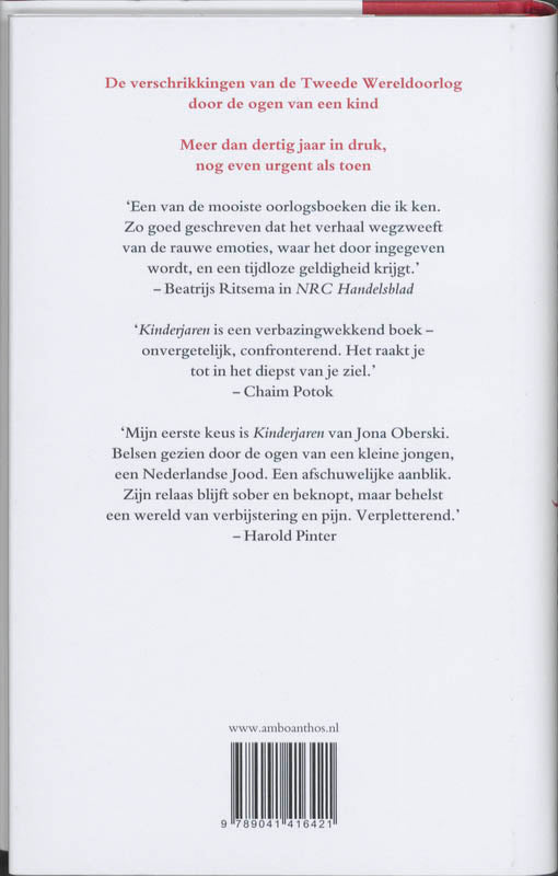 In een onopgesmukte, sobere stijl brengt Jona Oberski een ontroerende visie op de verschrikkingen van de oorlog, bezien door de ogen van een klein kind. Rauw en eerlijk, speels en onschuldig. Dit maakt Kinderjaren tot een klassieker met een universele zeggingskracht.