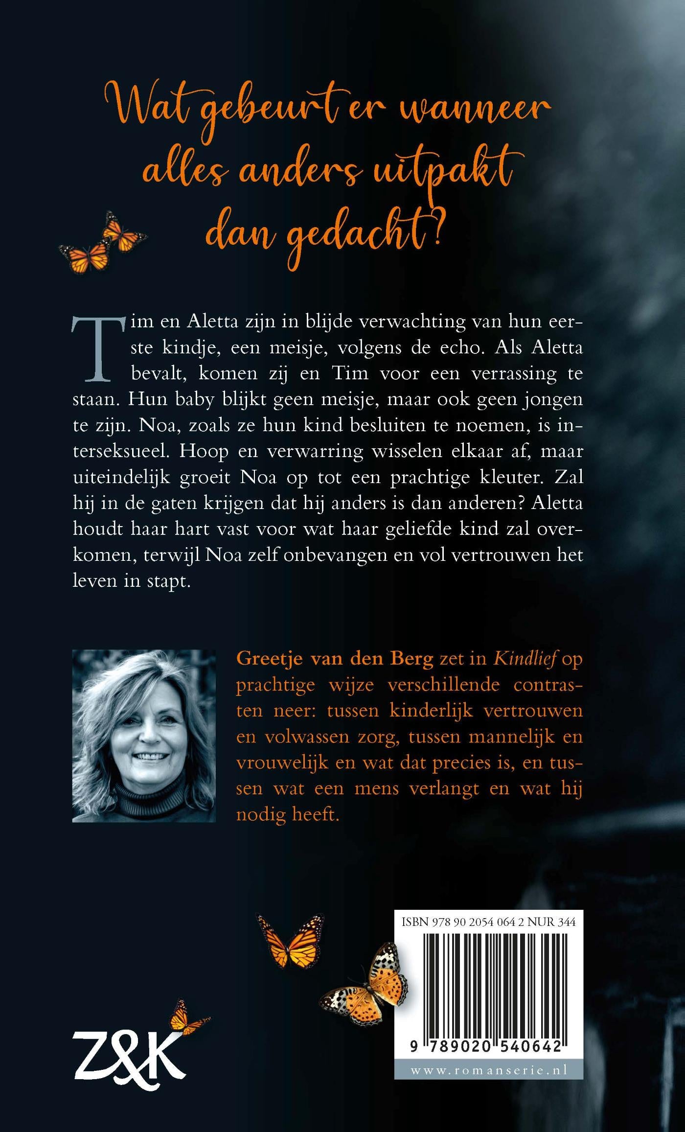 Tim en Aletta, de hoofdpersonen in 'Kindlief' van Greetje van den Berg zijn in blijde verwachting van hun eerste kindje, een meisje volgens de echo. Als Aletta bevalt, komen zij en Tim voor een verrassing te staan. Hun baby blijkt geen meisje, maar ook geen jongen te zijn. Noa, zoals ze hun kind besluiten te noemen, is interseksueel. Hoop en verwarring wisselen elkaar af, maar uiteindelijk groeit Noa op tot een prachtig jongetje. Zal hij in de gaten krijgen dat hij anders is dan anderen?