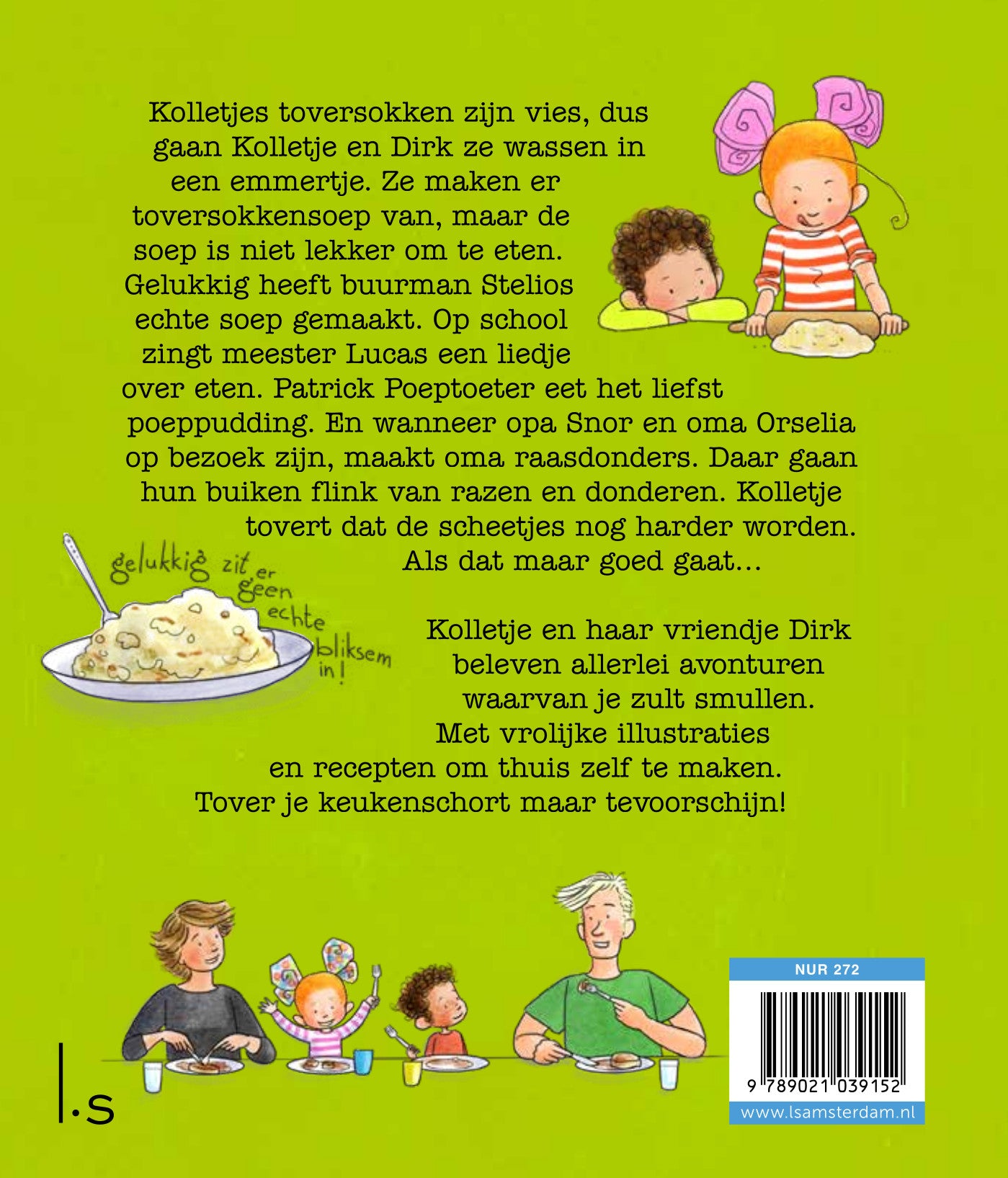 In Kolletje & Dirk koken toversokkensoep van Pieter Feller en Natascha Stenvert beleven Kolletje en haar vriendje Dirk allerlei avonturen waarvan elk kind zal smullen. In dit voorleesboek met vrolijke illustraties vind je bovendien makkelijke recepten om thuis zelf te maken. Tover je keukenschort maar tevoorschijn!
