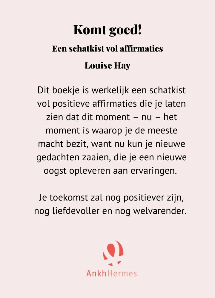 Dit boekje is werkelijk een schatkist vol positieve affirmaties die je laten zien dat dit moment – nu – het moment is waarop je de meeste macht bezit, want nu kun je nieuwe gedachten zaaien, die je een nieuwe oogst opleveren aan ervaringen. Je wordt niet meer geblokkeerd door beperkende gedachten, want je kunt je gedachten kiezen. Je toekomst zal nog positiever zijn, nog liefdevoller en nog welvarender.