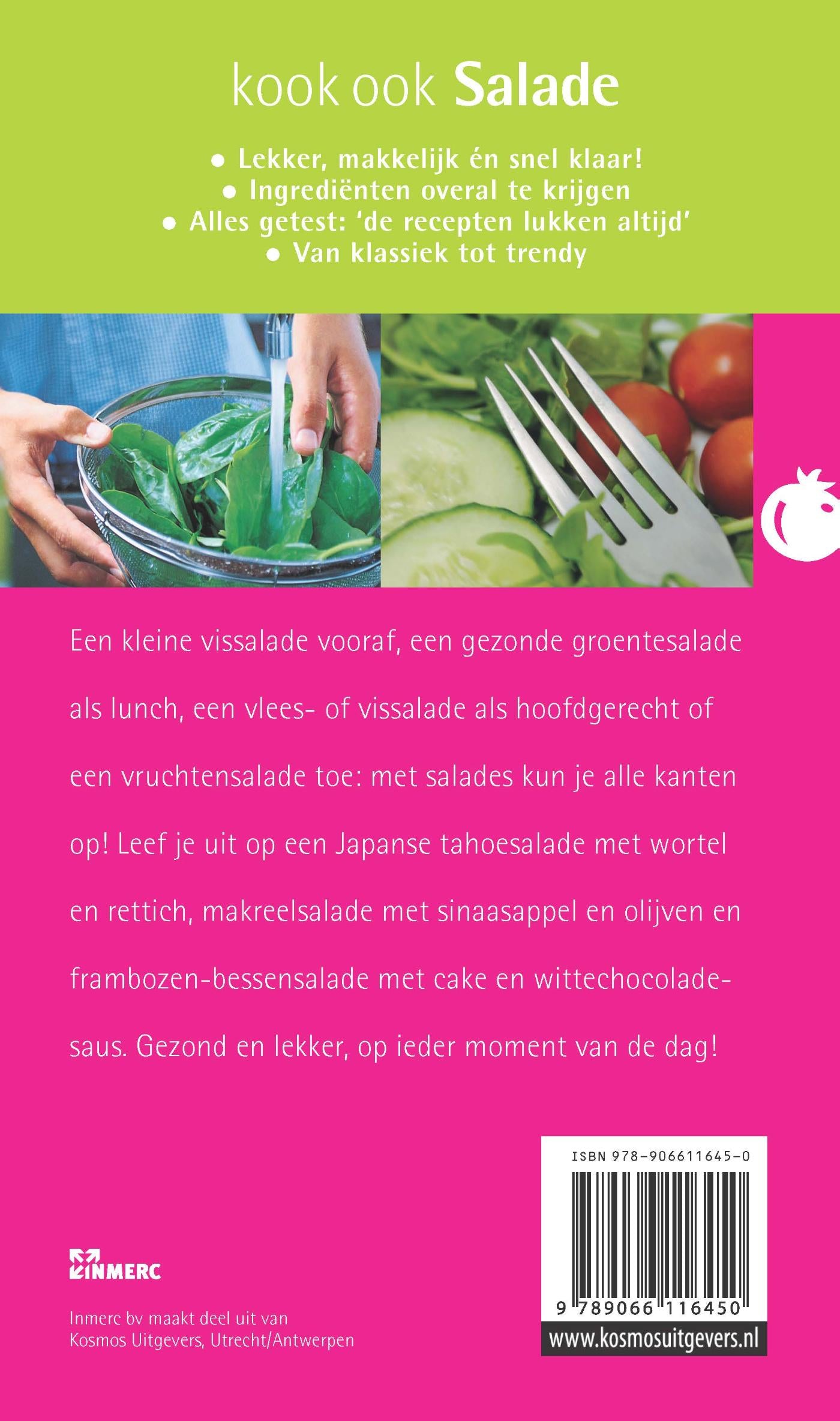 Leef je uit op een Japanse tahoesalade met wortel en rettich, Makreelsalade met sinaasappel en olijven en Frambozen-bessensalade met cade en wittechocoladesaus. En wil je je eigen, homemade salade eens opleuken? In kook ook Salade staan ook nog eens allemaal tips voor lekkere dressings.