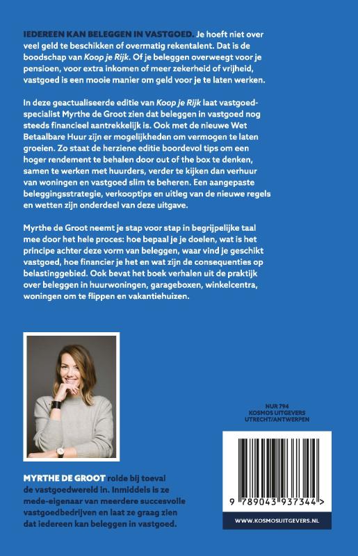 In deze geheel vernieuwde editie van Koop je Rijk onthult Myrthe de Groot hoe je vermogen kunt opbouwen met vastgoed, zelfs binnen de nieuwe Wet Betaalbare Huur. Dit boek zit vol praktische tips voor een hoger rendement, van out-of-the-box denkstrategieën en samenwerking met huurders tot slimme vastgoedbeheerstrategieën.