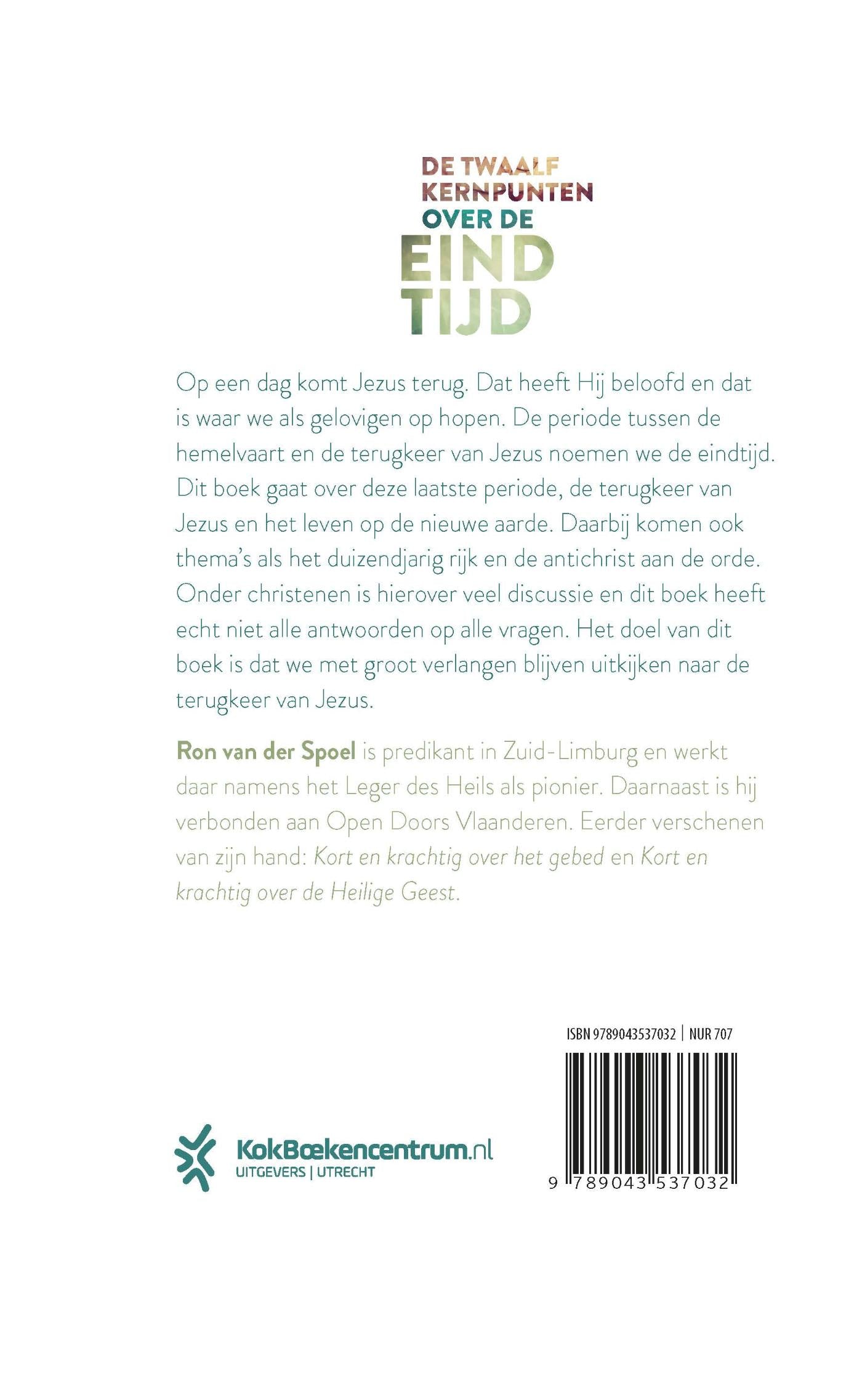 Met ‘Kort en krachtig over de eindtijd’ geeft Ron van der Spoel in twaalf korte hoofdstukken weer waar de eindtijd over gaat. Er komt een dag dat Jezus terugkeert naar deze wereld. Dat heeft Hij beloofd en dat is waar we als gelovigen op hopen. De periode tussen de hemelvaart en terugkeer van Jezus noemen we de eindtijd. Dit boek gaat over deze laatste periode, over wat er gaat gebeuren bij de terugkeer van Jezus en hoe het leven op de nieuwe aarde zal zijn. Er is onder christenen veel discussie hierover en dit boek heeft echt niet alle antwoorden op alle vragen. Het doel van dit boek is dat we met groot verlangen blijven uitkijken naar de terugkeer van Jezus.