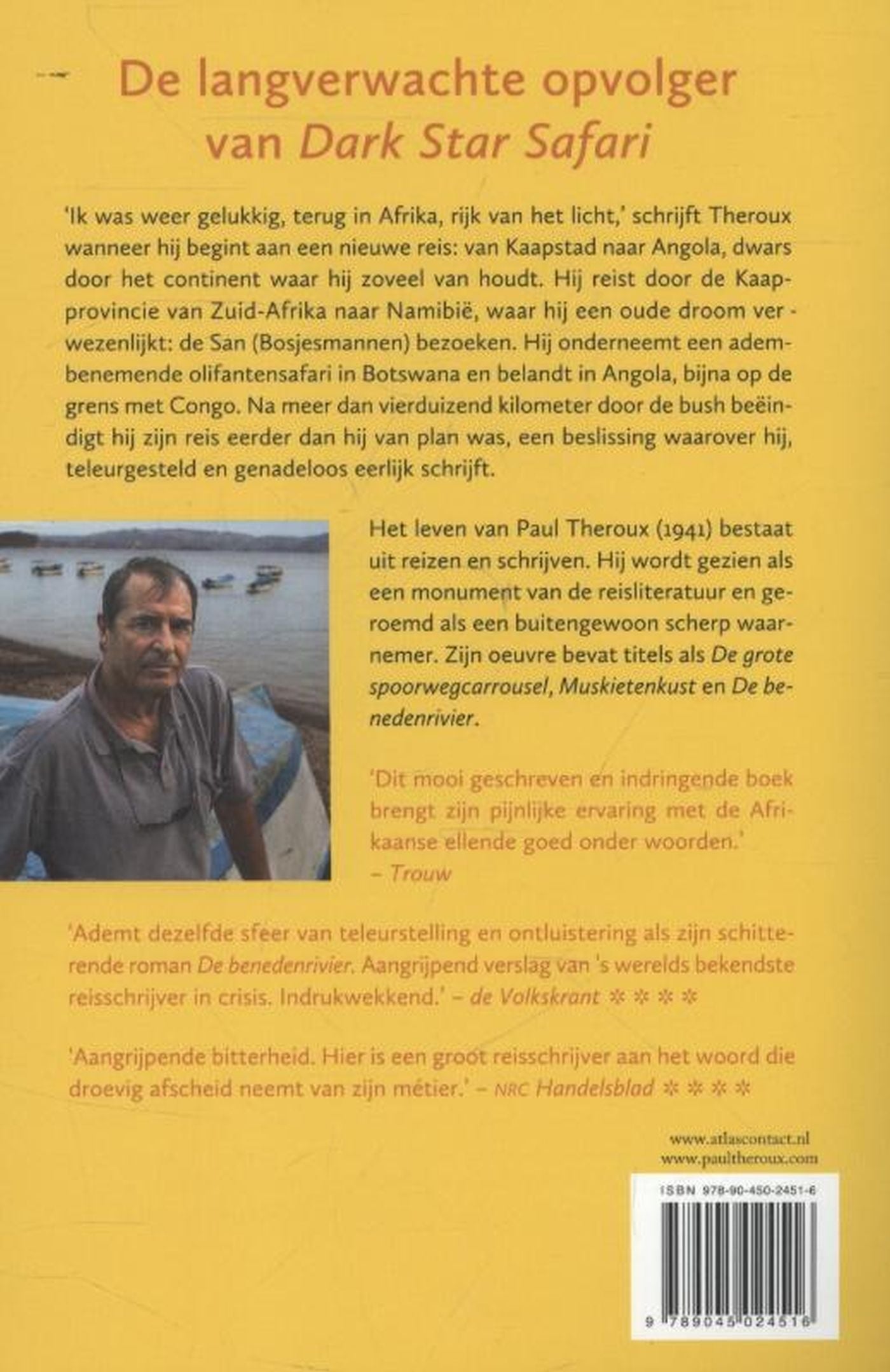 `Ik was weer gelukkig, terug in Afrika, rijk van het licht, schrijft Theroux wanneer hij begint aan een nieuwe reis: van Kaapstad naar Angola, dwars door het continent waar hij zoveel van houdt. Hij reist door de Kaapprovincie van Zuid-Afrika naar Namibië, waar hij een oude droom verwezenlijkt: de San (Bosjesmannen) bezoeken. Hij onderneemt een adembenemende olifantensafari in Botswana en belandt in Angola, bijna op de grens met Congo. Na meer dan vierduizend kilometer door de bush beëindigt hij zijn reis eerder dan hij van plan was, een beslissing waarover hij, teleurgesteld, genadeloos eerlijk schrijft.