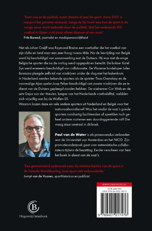 Paul van de Water onderzoekt in ‘Langs de lijn’ de rol van foute sporters onder het nationaalsocialisme. Het boek bevat portretten van 37 bekende Nederlandse en Vlaamse sporters die tijdens de bezetting lid waren van organisaties als de NSB en de SS. Zo komen Tinus Osendarp, de Nederlandse sprinter die derde werd op de Olympische Spelen in Berlijn na de Amerikanen Metcalfe en Owens, Oranjedoelman en SS’er Gejus van der Meulen, wielrenner Cor Wals (ook SS’er), en bokser Karel Sys aan bod. Waarom omarmden zij het nationaalsocialisme? In ‘Langs de lijn’ gaat Paul van de Water uitgebreid in op de rol van sport in het nationaalsocialisme en op de naoorlogse zuivering van foute sporters.
