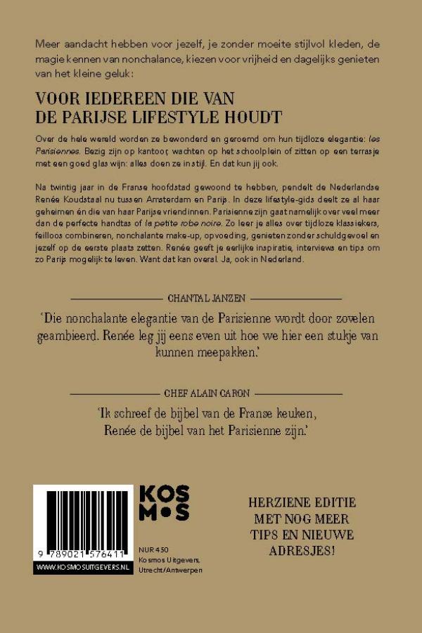 ‘Leef als een Parisienne’ van Renée Koudstaal is een praktische en inspirerende stijlgids voor Nederlandse vrouwen die zich de Parijse leefstijl eigen willen maken. De auteur woonde en werkte ruim 20 jaar in de Franse hoofdstad en deelt in deze lifestyle-gids al haar geheimen en die van haar Parijse vriendinnen. Met onderwerpen als: