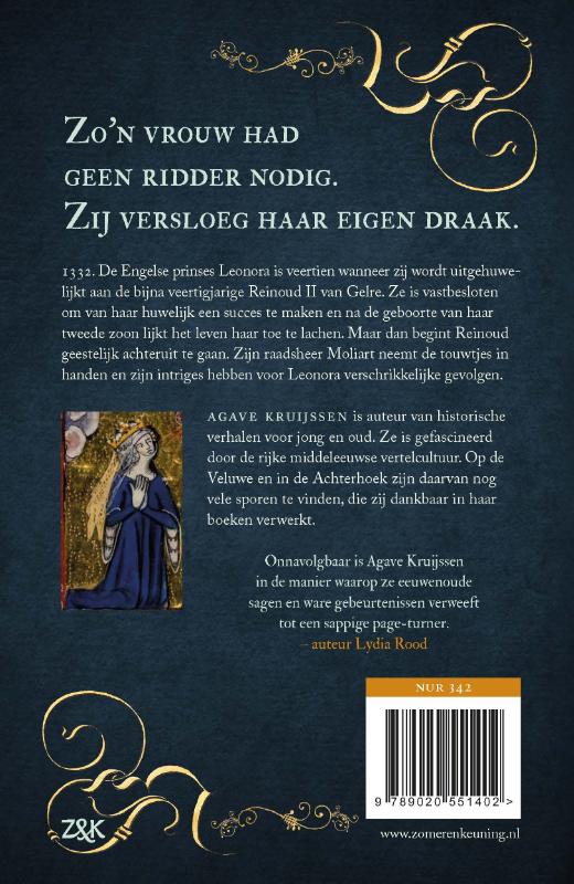 ‘Leonora’ is het meeslepende verhaal over prinses Leonora van Engeland die als veertienjarig meisje wordt uitgehuwelijkt aan Reinoud II van Gelre, een weduwnaar van tegen de veertig. Tegen de achtergrond van de Honderdjarige Oorlog tussen Frankrijk en Engeland probeert Leonora van haar huwelijk een succes te maken. Dat succes lijkt verzekerd nadat zij in korte tijd het leven schenkt aan twee zonen die het voortbestaan van de Gelderse dynastie veiligstellen. Maar dan begint Reinoud te dementeren en neemt zijn raadsheer Moliart de macht over. Zijn intriges hebben voor Leonora verschrikkelijke gevolgen.