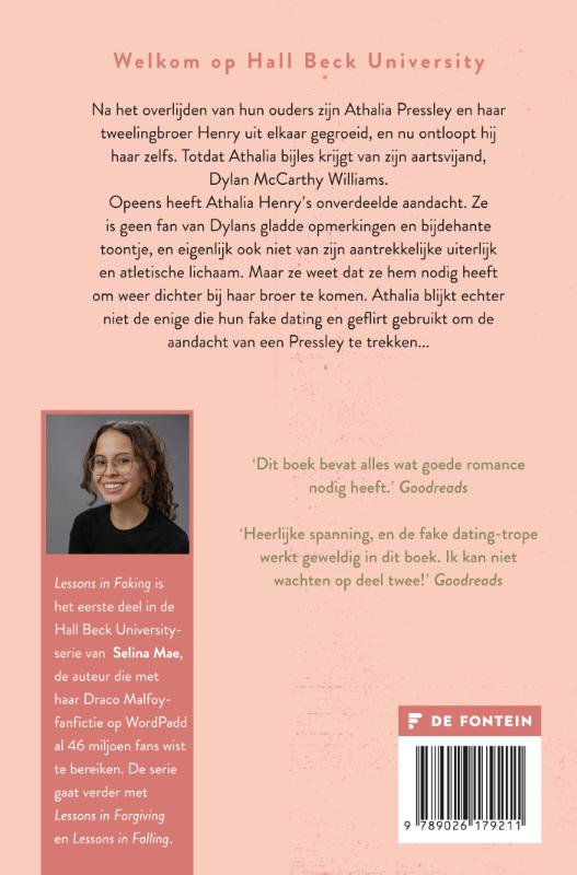 ‘Lessons in Faking’ is het eerste deel in de Hall Beck University-serie van Selina Mae, de auteur die met haar Draco Malfoy-fanfictie op WordPadd al 40 miljoen fans wist te bereiken. De serie gaat verder met ‘Lessons in Forgiving’ en 'Lessons in Falling'. Dit is de Nederlandstalige uitgave.