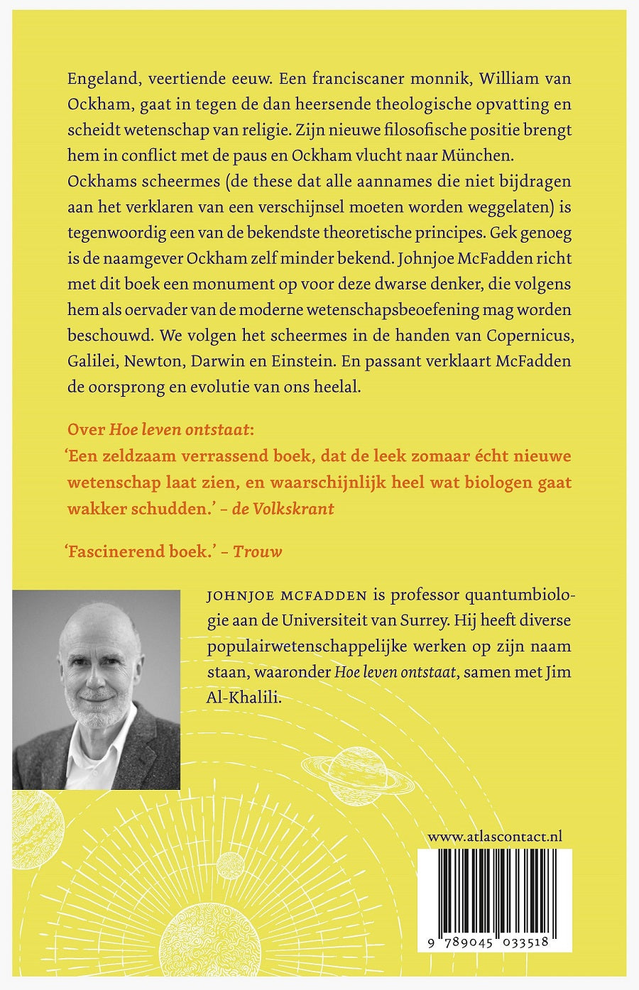In ‘Leven is eenvoudig’ richt Johnjoe McFadden een monument op voor William van Ockham, een dwarse denker, die volgens hem als oervader van de moderne wetenschapsbeoefening mag worden beschouwd. We volgen het scheermes in de handen van Copernicus, Galilei, Newton, Darwin en Einstein. En passant verklaart McFadden de oorsprong en evolutie van ons heelal.