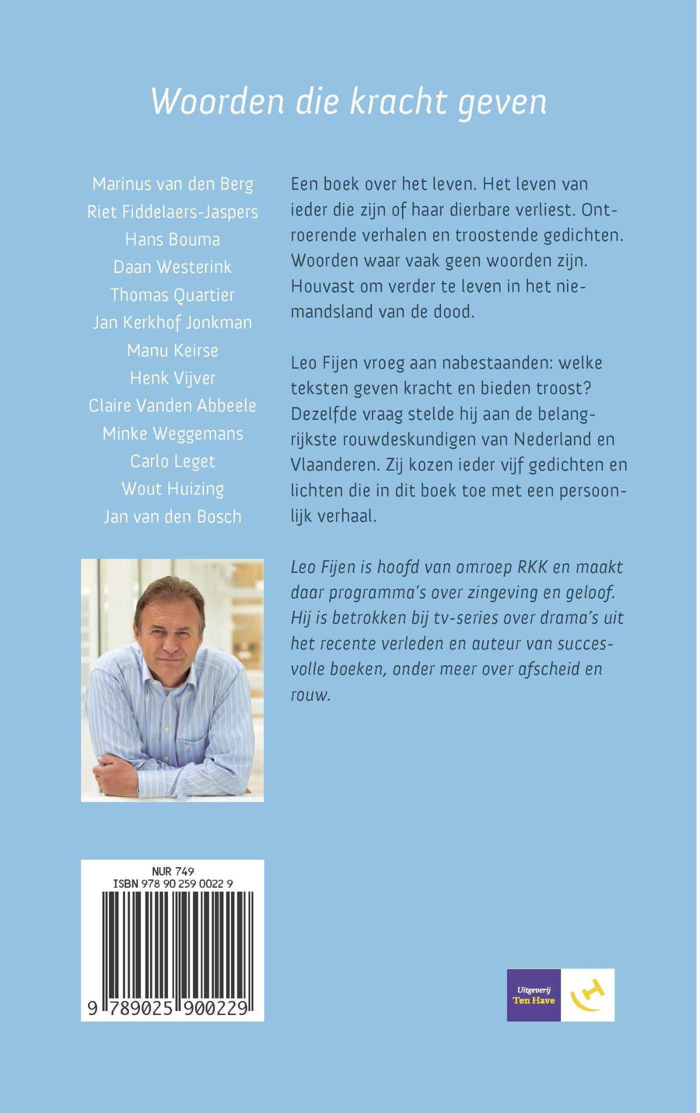 Een boek over het leven. Het leven van ieder die zijn of haar dierbare verliest. Ontroerende verhalen en troostende gedichten. Woorden waar vaak geen woorden zijn. Houvast om verder te leven in het niemandsland van de dood. Leo Fijen vroeg aan nabestaanden: welke teksten geven kracht en bieden troost?
