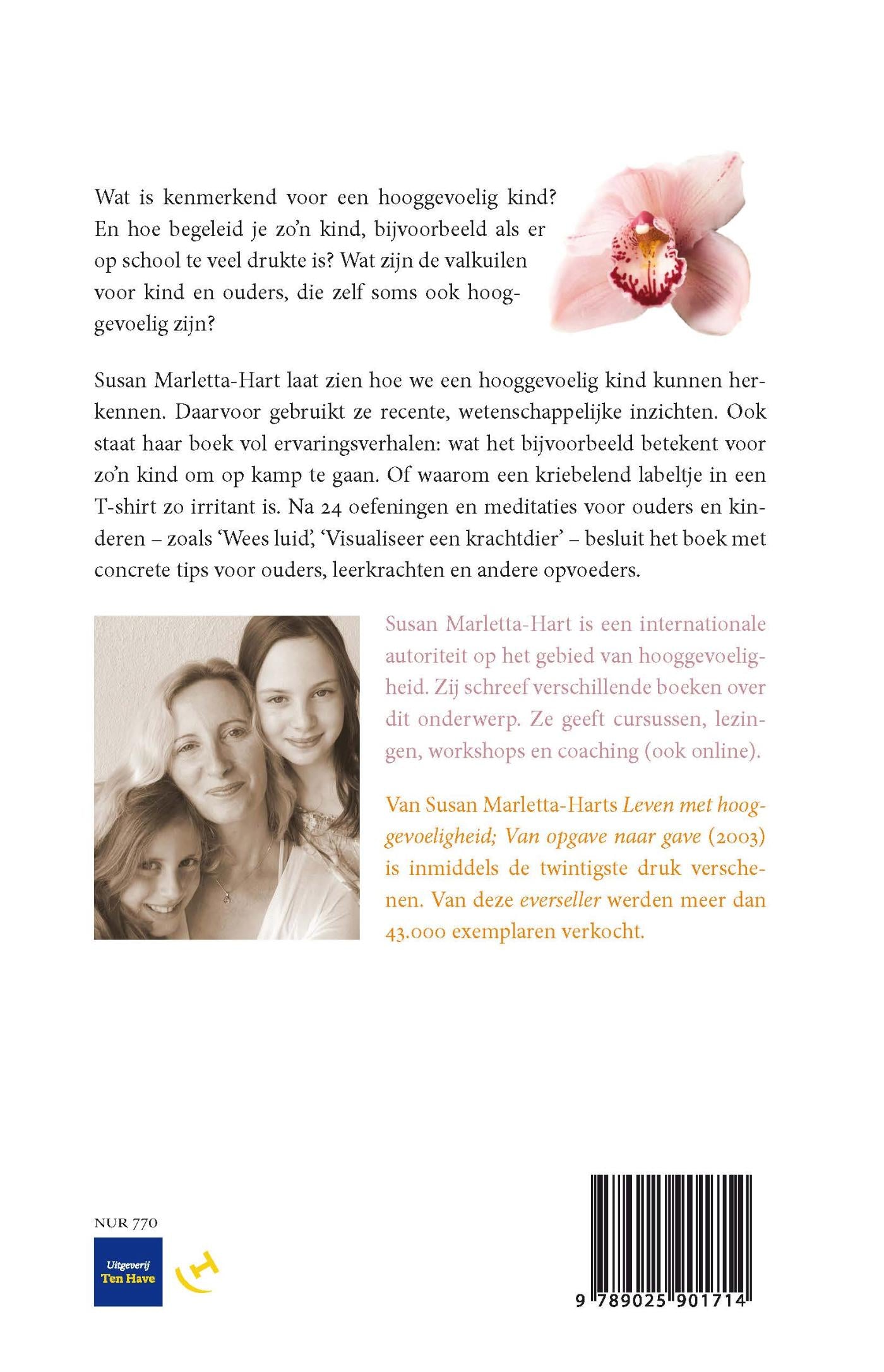 Sinds het verschijnen van haar bestseller Leven met hooggevoeligheid krijgt Susan Marletta-Hart van lezers regelmatig de vraag hoe ze het beste kunnen omgaan met hoogsensitievekinderen. Wat is kenmerkend voor hen, hoe begeleid je ze als het bijvoorbeeld op school te druk is, wat zijn de valkuilen voor deze kinderen en hun al dan niet hooggevoelige ouders?
