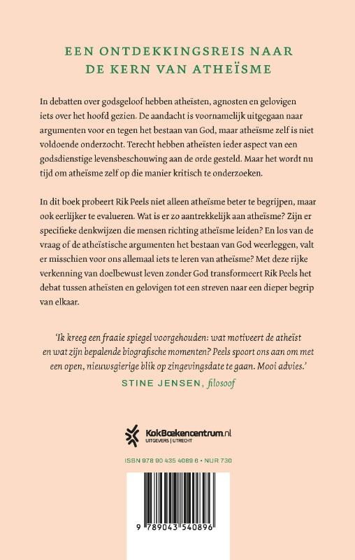 In dit boek probeert Rik Peels niet alleen atheïsme beter te begrijpen, maar ook eerlijker te evalueren. Wat is er zo aantrekkelijk aan atheïsme? Zijn er specifieke denkwijzen die mensen richting atheïsme leiden? En los van de vraag of de atheïstische argumenten het bestaan van God weerleggen, valt er misschien iets te leren van atheïsme voor ons allemaal? Met deze rijke verkenning van doelbewust leven zonder God transformeert Rik Peels het debat tussen atheïsten en gelovigen tot een streven naar een dieper begrip van elkaar.