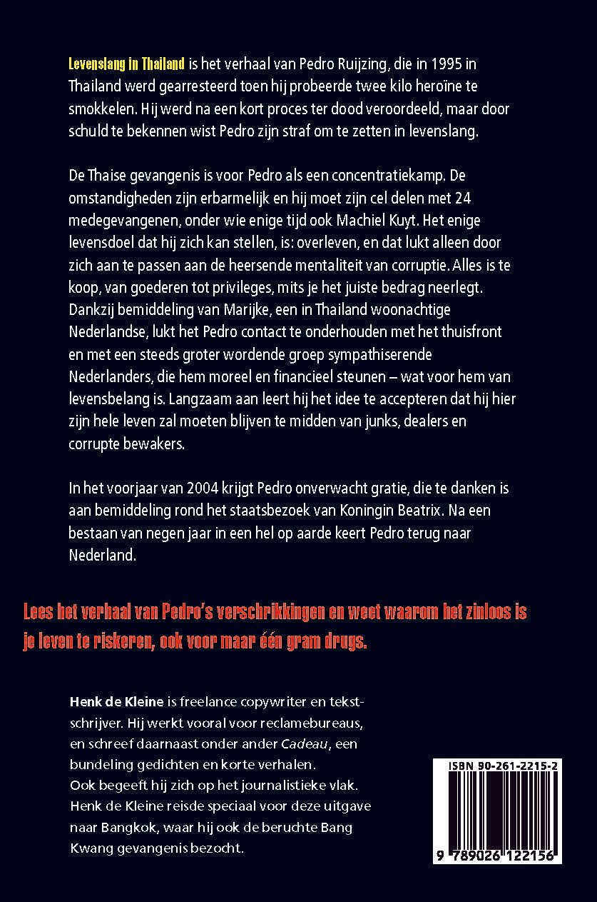 Dit boek vertelt het huiveringwekkende verhaal van Pedro Ruijzing, die in 1995 in Thailand ter dood veroordeeld werd voor heroïnesmokkel. Door schuld te bekennen werd zijn straf omgezet in levenslang. In de Thaise gevangenis zijn de omstandigheden erbarmelijk. Met vierentwintig medegevangen in één cel heeft Pedro slechts één levensdoel: overleven. Dat lukt hem alleen door zich aan te passen aan de heersende corruptie. Alles is te koop, van goederen tot privileges, mits je het juiste bedrag neerlegt. Dankzij bemiddeling van een Nederlandse vrouw lukt het Pedro contact te onderhouden met het thuisfronten en een groeiende sympathiserende Nederlanders voor hem van levensbelang. Langzaam leert hij het idee te accepteren dat hij hier zijn hele leven zal moeten blijven, te midden van junks, dealers en corrupte bewakers. In 2004 krijgt Pedro onverwacht gratie. Na een bestaan van negen jaar in de hel op aarde keert hij terug naar Nederland. Hij kan maar moeilijk de draad oppakken en moet de samenleving opnieuw leren kennen. Een baan vinden blijkt erg moeilijk en er is geen instantie die zich om hem bekommert. Maar hij zit niet bij de pakken neer en zet zich in voor drugspreventie op scholen