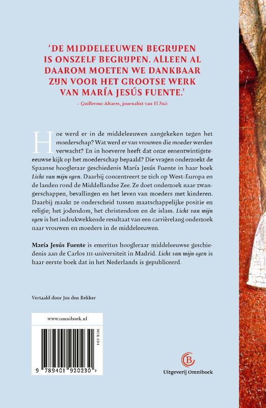 Hoe werd er in de middeleeuwen aangekeken tegen het moederschap? Wat werd er van vrouwen die moeder werden verwacht? En in hoeverre bepaalt dat onze eenentwintigste-eeuwse kijk op het moederschap? Die vragen onderzoekt de Spaanse hoogleraar geschiedenis María Jesús Fuente in haar boek ‘Licht van mijn ogen’. Ze concentreert zich op West-Europa en de landen rond de Middellandse Zee. Ze doet onderzoek naar zwangerschappen, bevallingen en het leven van moeders met kinderen. Daarbij maakt ze onderscheid tussen maatschappelijke positie en religie; het jodendom, het christendom en de islam. ‘Licht van mijn ogen’ is het indrukwekkende resultaat van een carrièrelang onderzoek naar vrouwen en moeders in de middeleeuwen.