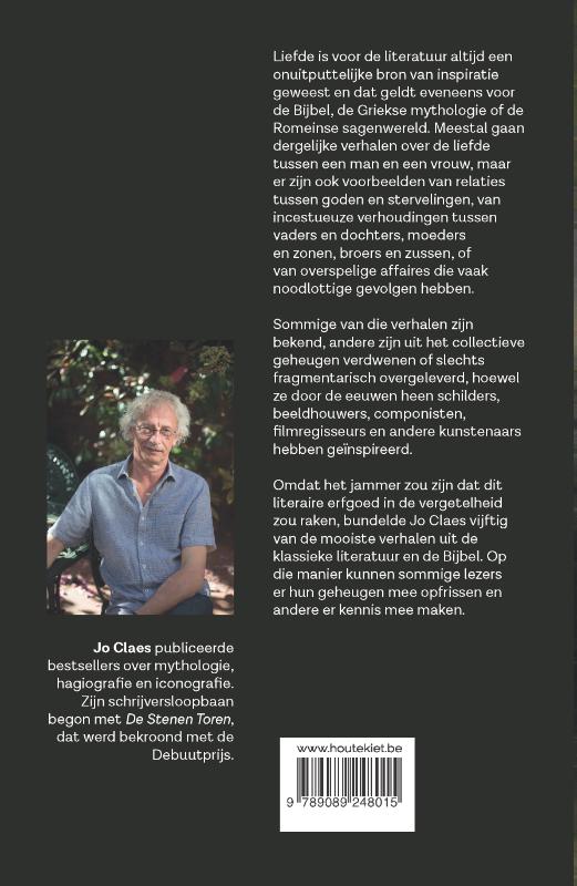 Liefde is voor de literatuur altijd een onuitputtelijke bron van inspiratie geweest en dat geldt eveneens voor de Bijbel, de Griekse mythologie of de Romeinse sagenwereld. Meestal gaan dergelijke verhalen over de liefde tussen een man en een vrouw, maar er zijn ook voorbeelden van relaties tussen goden en stervelingen, van incestueuze verhoudingen tussen vaders en dochters, moeders en zonen, broers en zussen, of van overspelige affaires met vaak noodlottige gevolgen.