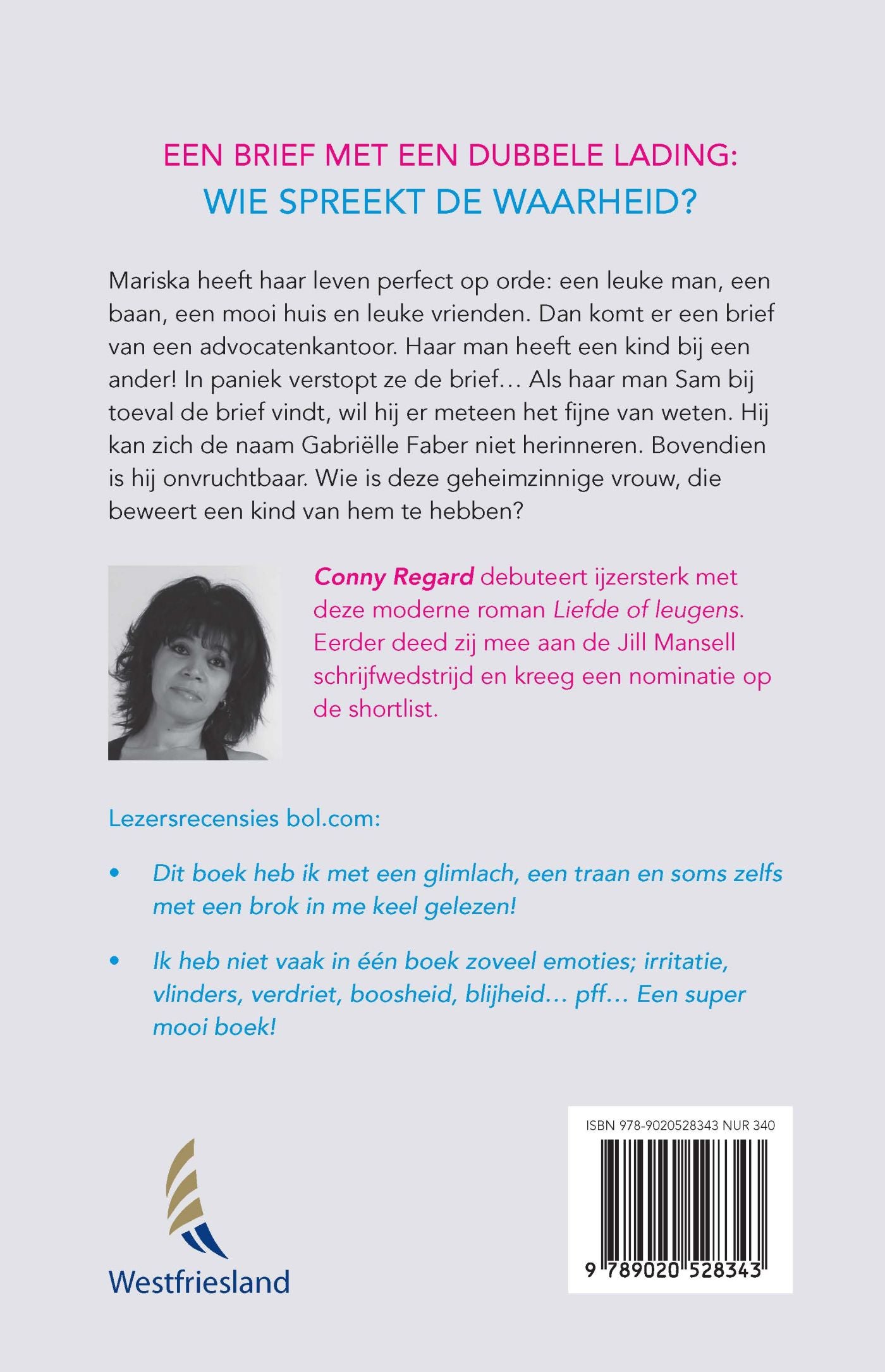 Mariska en Sam zijn dolgelukkig samen: een mooi huis, leuke vrienden en allebei een goede baan. Het enige wolkje aan de stralende lucht is misschien dat zij nog steeds geen kinderen hebben gekregen. Als Sam zich laat testen, blijkt hij onvruchtbaar te zijn. Hoewel dat een teleurstelling is, staat het hun geluk niet in de weg. Dan komt er een brief van een advocatenkantoor. Sam blijkt een kind bij een ander te hebben! In paniek verstopt Mariska de brief... Als Sam bij toeval de brief vindt, wil hij echter het fijne ervan weten. Hij kan zich de vrouw Gabriëlle Faber niet herinneren. Bovendien is hij onvruchtbaar, toch? Wie is deze geheimzinnige vrouw, die beweert een kind van hem te hebben? Gabi blijkt overleden te zijn, maar Sam gaat op zoek naar zijn kind. Ondertussen loopt zijn relatie met Mariska steeds stroever. Zij doet alles om Sam bij zich te houden, maar kan zijn zoektocht niet steunen. Dan doet Sam een afschuwelijke ontdekking...Opnieuw een ijzersterk roman van Conny Regard, na haar succesvolle roman Ik huur een man!