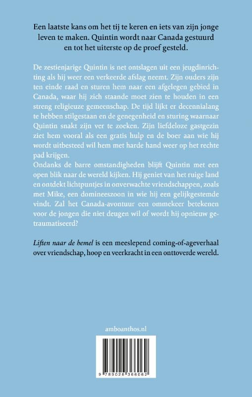‘Lex Paleaux weet zich in Liften naar de hemel goed te verplaatsen in een zestienjarige jongen. Hij wisselt het heden af met flashbacks, elke keer als Quintin in Canada iets vervelends overkomt.’ - de Boekenkrant