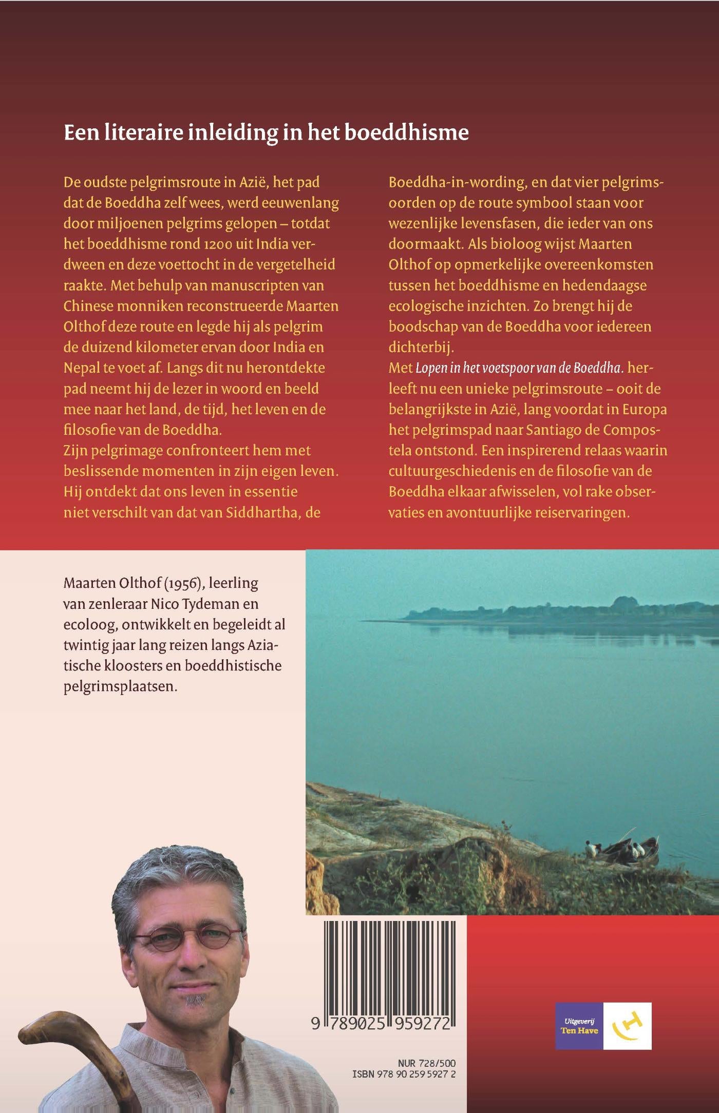 Zijn pelgrimage confronteert hem met beslissende momenten in zijn eigen leven. Hij ontdekt dat ons leven in essentie niet verschilt van dat van Siddhartha, de Boeddha-in-wording, en dat vier pelgrimsoorden op de route symbool staan voor wezenlijke levensfasen, die ieder van ons doormaakt. Als bioloog wijst Maarten Olthof op opmerkelijke overeenkomsten tussen het boeddhisme en hedendaagse ecologische inzichten. Zo brengt hij de boodschap van de Boeddha voor iedereen dichterbij.