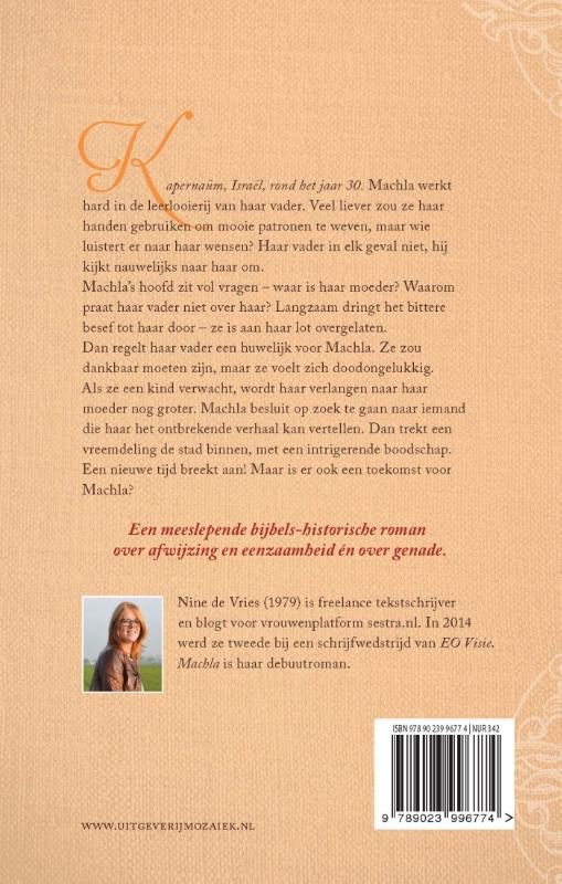 'Kapernaüm, Israël, rond het jaar 30.' Machla werkt hard in de leerlooierij van haar vader. Veel liever zou ze haar handen gebruiken om mooie patronen te weven, maar wie luistert er naar haar wensen? Haar vader in elk geval niet, hij kijkt nauwelijks naar haar om.