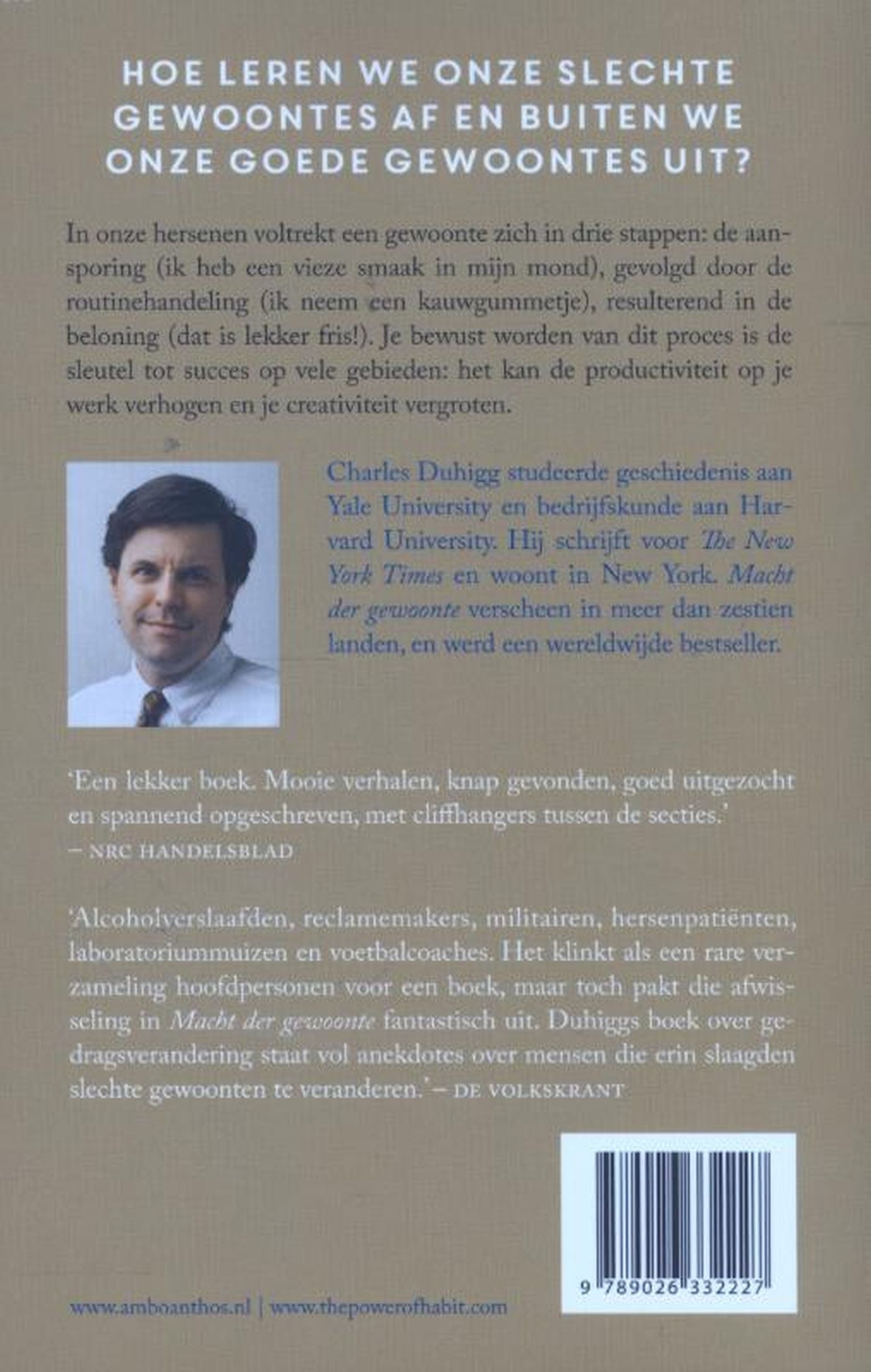‘Alcoholverslaafden, reclamemakers, militairen, hersenpatiënten, laboratoriummuizen en voetbalcoaches. Het klinkt als een rare verzameling hoofdpersonen voor een boek, maar toch pakt die afwisseling in Macht der gewoonte fantastisch uit. Duhiggs boek over gedragsverandering staat vol anekdotes over mensen die erin slaagden slechte gewoonten te veranderen.’ – de Volkskrant