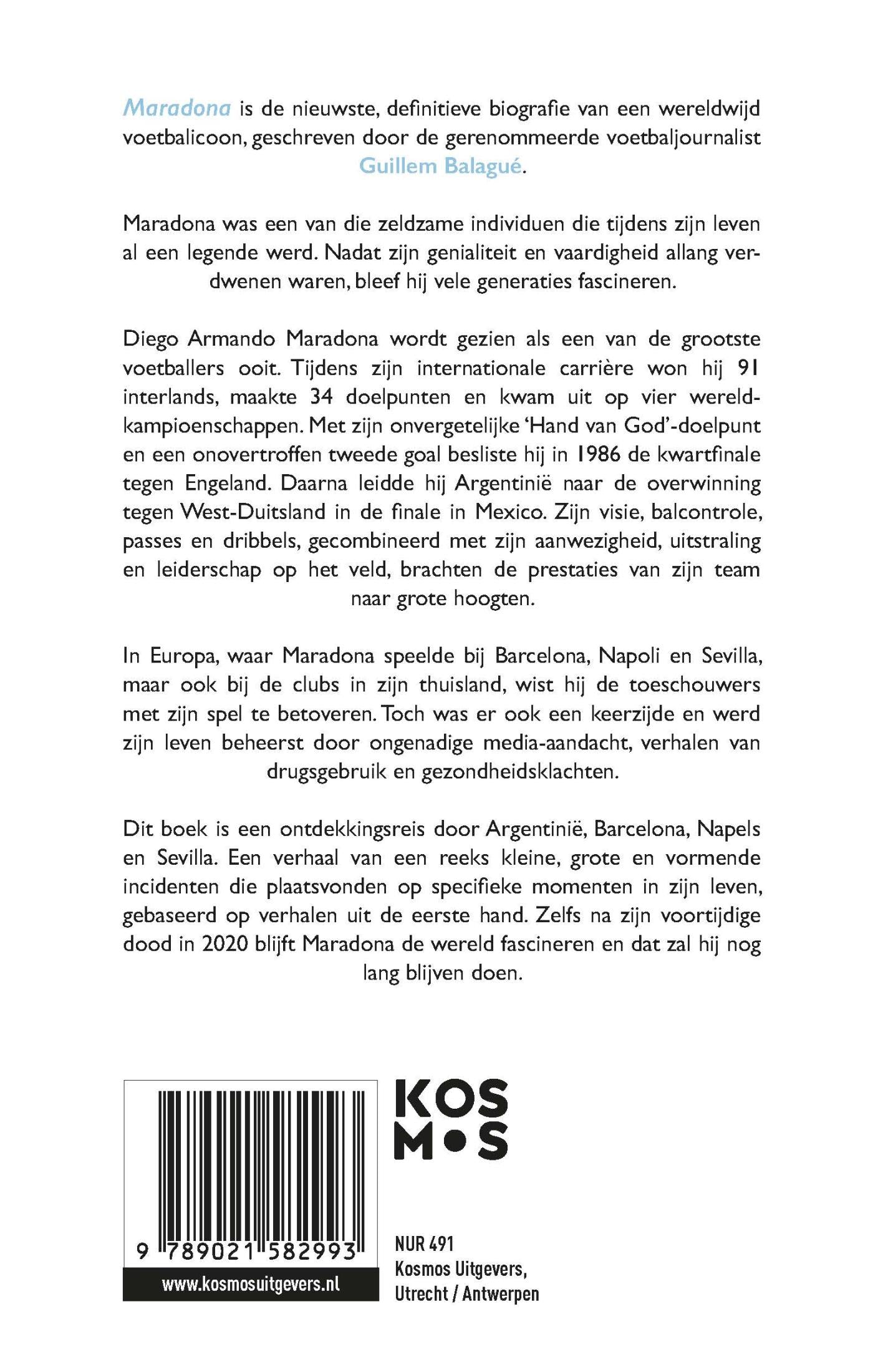 ‘Maradona’ is de definitieve biografie van een wereldwijd icoon. Maradona was een van die zeldzame individuen die tijdens zijn leven al een legende werd. Nadat zijn genialiteit en vaardigheid allang verdwenen waren, bleef hij vele generaties fascineren. Waarom? Dit boek is een ontdekkingsreis door Argentinië, Barcelona, Napels en Sevilla. Een verhaal van een reeks kleine, grote en vormende incidenten die plaatsvonden op specifieke momenten in zijn leven, gebaseerd op verhalen uit de eerste hand.