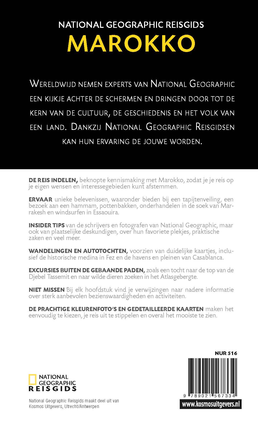 National Geographic Reisgids Marokko is een exclusieve gids met sublieme fotografie die u meeneemt naar de bekende en minder bekende bezienswaardigheden. De experts van National Geographic nemen een kijkje achter de schermen en dringen door tot de kern van de cultuur, de geschiedenis en bijzondere plekjes van het land.