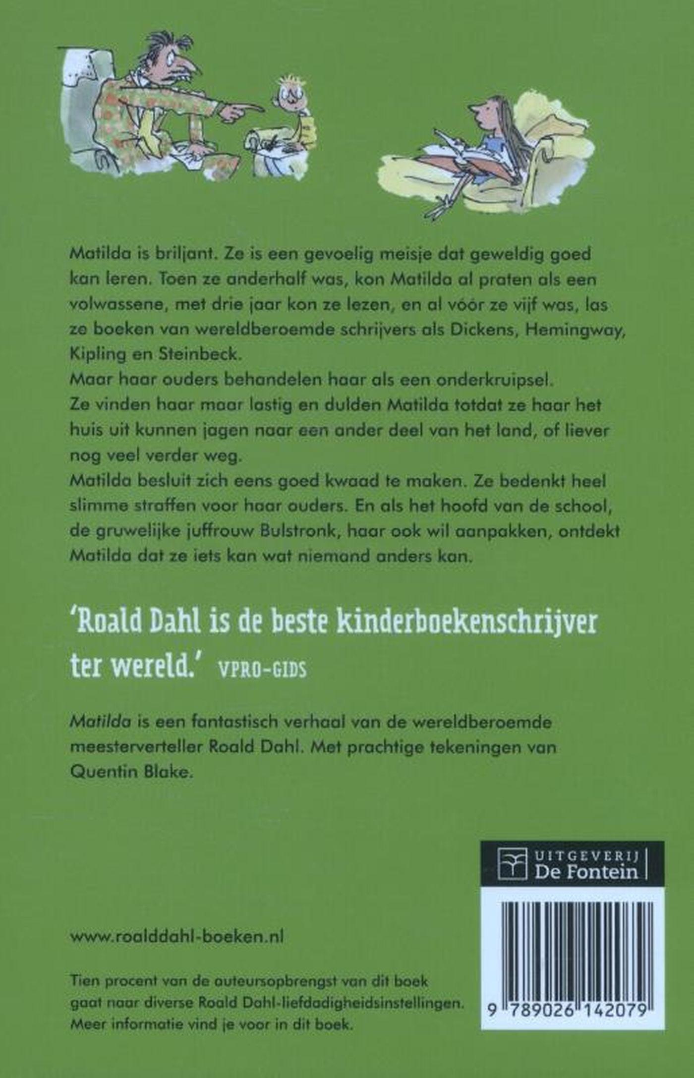 Matilda is briljant. Ze kan geweldig goed leren. Toen ze anderhalf was kon Matilda al praten als een volwassene, met 3 jaar kon ze lezen, en al vóór ze 5 was, las ze boeken van wereldberoemde schrijvers als Dickens, Hemingway, Kipling en Steinbeck.