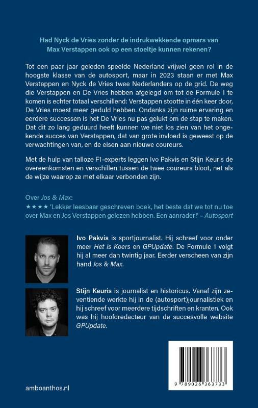 Max & Nyck. Hoe Max Verstappen de komst van Nyck de Vries naar de F1 mogelijk maakte, van Ivo Pakvis en Stijn Keuris, vertelt de spannende verhalen van twee jonge Nederlandse Formule 1-coureurs.