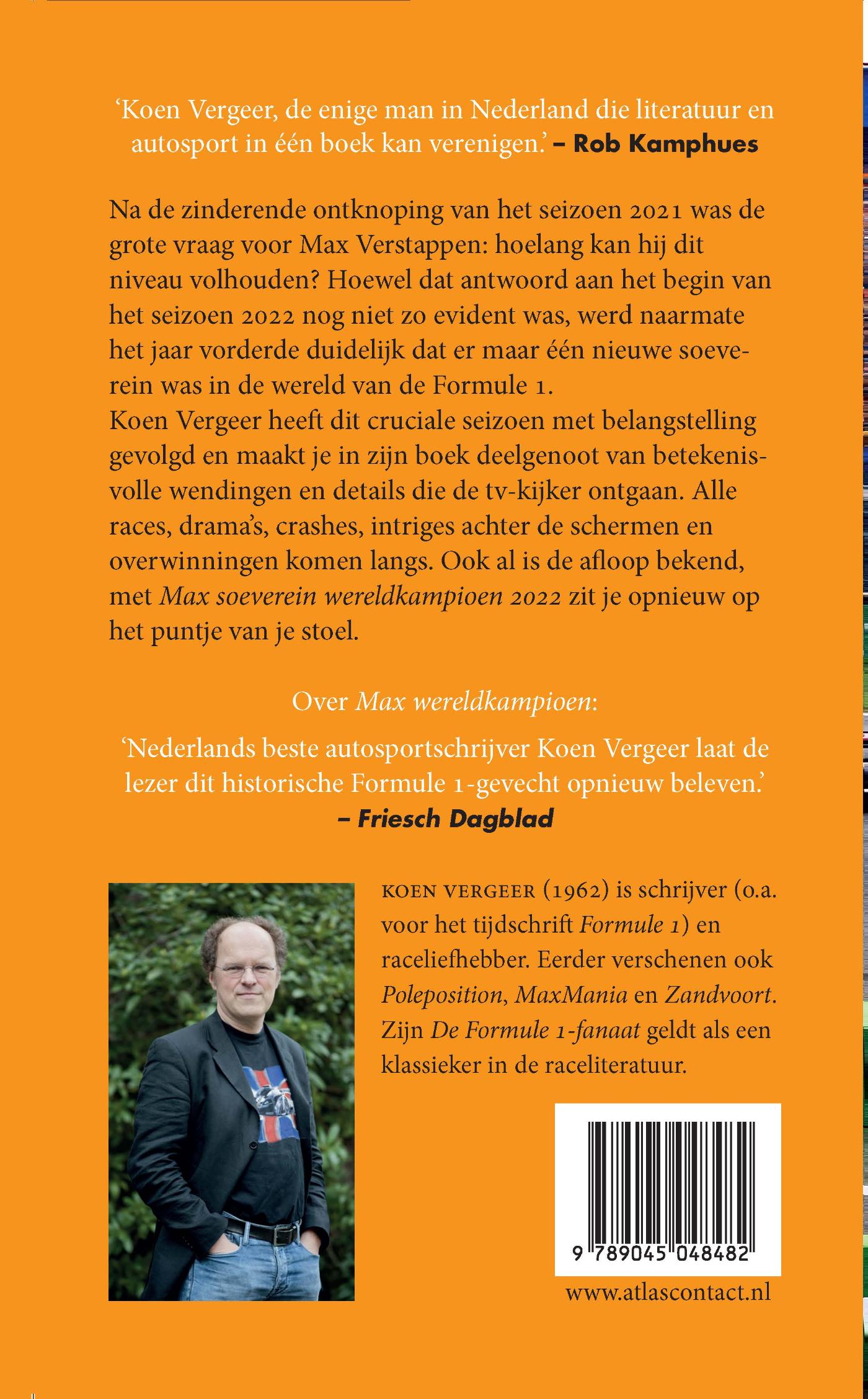 Koen Vergeer heeft dit cruciale seizoen met belangstelling gevolgd en maakt je in zijn boek deelgenoot van betekenisvolle wendingen en details die de tv-kijker ontgaan. Alle races, drama’s, crashes, intriges achter de schermen en overwinningen komen langs. Ook al is de afloop bekend, met Max soeverein wereldkampioen 2022 je zit opnieuw op het puntje van je stoel.