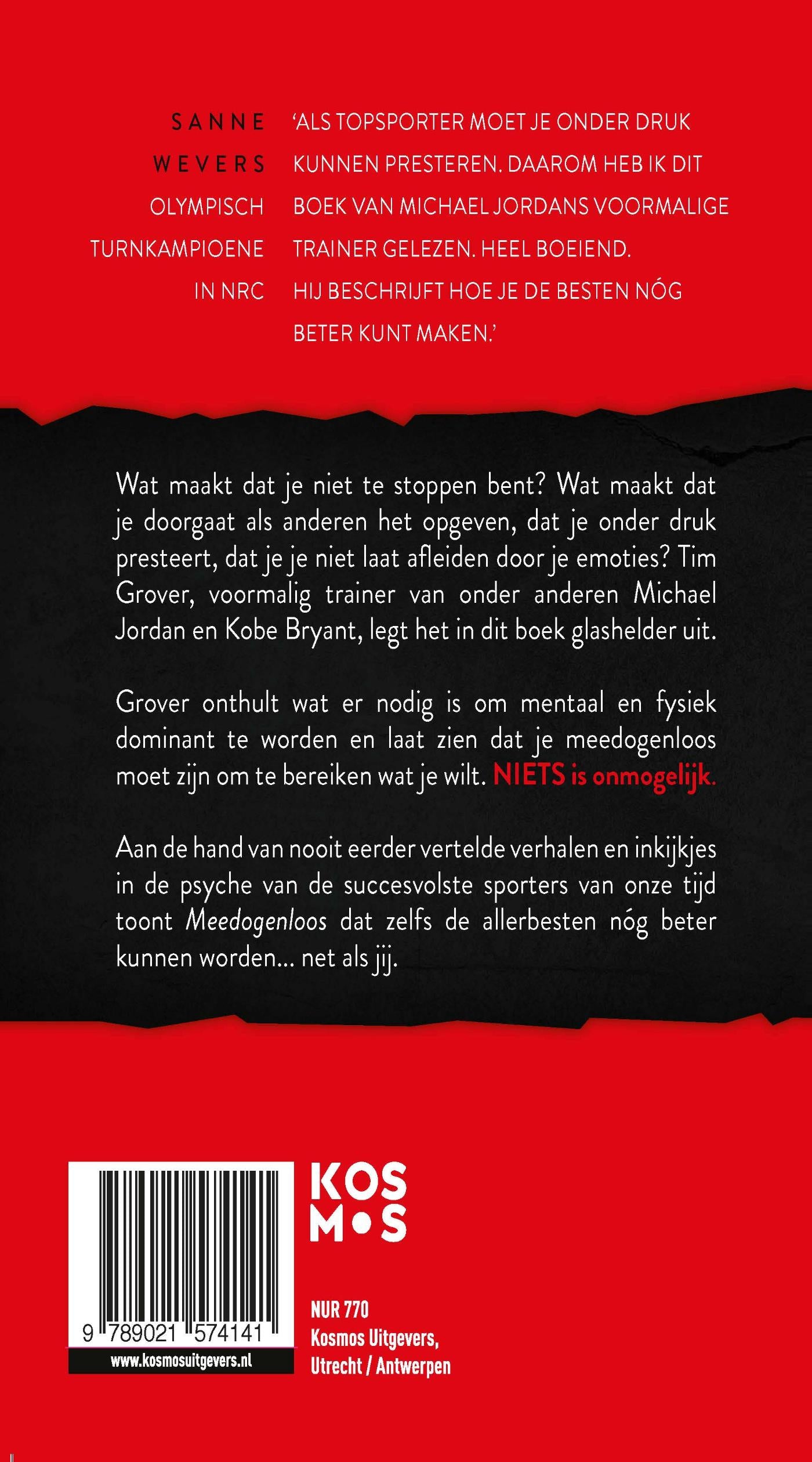 De legendarische coach van o.a. Michael Jordan en Kobe Bryant, Tim Grover, onthult wat er nodig is om mentaal en fysiek dominant te worden en toont aan dat je meedogenloos moet zijn om te bereiken wat je wilt. Direct, hard en genadeloos eerlijk laat Grover zien hoe wanneer alle anderen opgeven, jíj door kunt gaan. NIETS is onmogelijk. Aan de hand van nooit eerder vertelde verhalen en inkijkjes in de psyche van de succesvolste sporters van onze tijd toont Meedogenloos dat zelfs de allerbesten nog beter kunnen worden... net als jij.