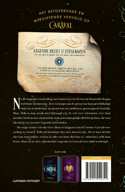 Meester Legende is het betoverende en meeslepende vervolg op de New York Times-bestseller Caraval van Stephanie Garber. Nu leverbaar als paperback met een fraai bedrukt boekblok! Lees ook: Caraval (deel 1) en Finale (deel 3), en de Caraval-novelle Het spektakel.