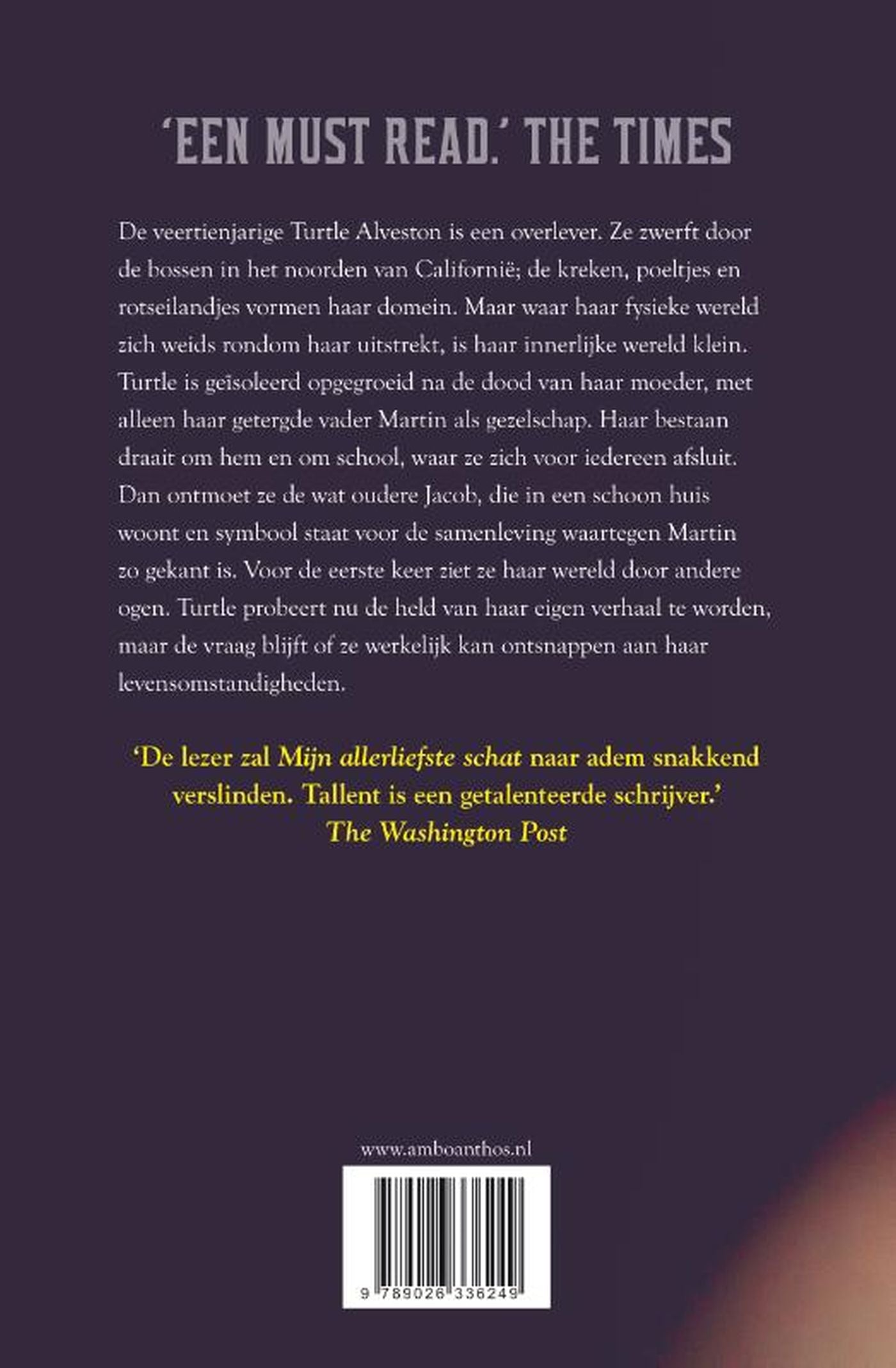 ‘Mijn allerliefste schat’ van Gabriel Tallent draait om de veertienjarige overlever Turtle Alverston. Waar Turtles fysieke wereld zich weids rondom haar uitstrekt, is haar innerlijke wereld klein. Dan ontmoet ze Jacob, een wat oudere jongen, die in een schoon huis woont en naar haar kijkt alsof ze de zon is. Voor het eerst denkt ze eraan te ontsnappen aan haar getergde vader. Ze wordt de held van haar verhaal, en ook de onze. ‘Mijn allerliefste schat’ van Gabriel Tallent is een adembenemend debuut in een zelfverzekerde stijl, over een meisje en haar drang naar vrijheid.
