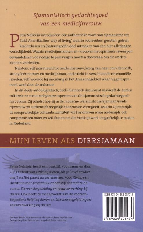 De auteur introduceert een authentieke vorm van sjamanisme uit Zuid-Amerika, waarin voorouders, geesten, gidsen en krachtdieren deel uitmaken van een niet-alledaagse werkelijkheid. Nelstein, zelf opgeleid door haar Surinaamse oom en medicijnman Kenneth en geïnitieerd tot medicijnvrouw, schetst hoe zij als diersjamaan zo authentiek mogelijk haar missie vormgeeft, waarin zij de culturele identiteit wil handhaven maar ook compromissen sluit om dit medicijnwerk toegankelijk te maken in Nederland.