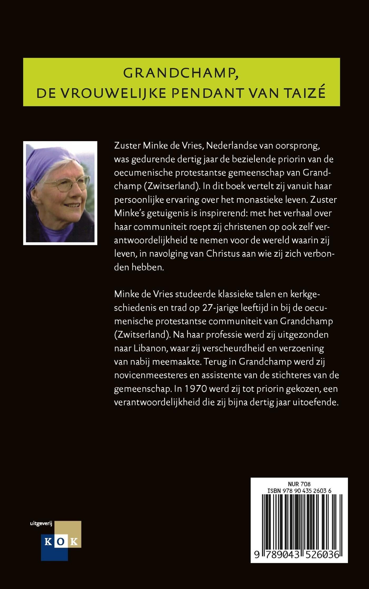 De van oorsprong Nederlandse Zuster Minke de Vries was gedurende 30 jaar priorin van de oecumenische protestantse gemeenschap van Grandchamp (Zwitserland). In Mijn leven in Grandchamp vertelt zij op inspirerende wijze over het naar buiten toe gerichte monastieke leven in Grandchamp.