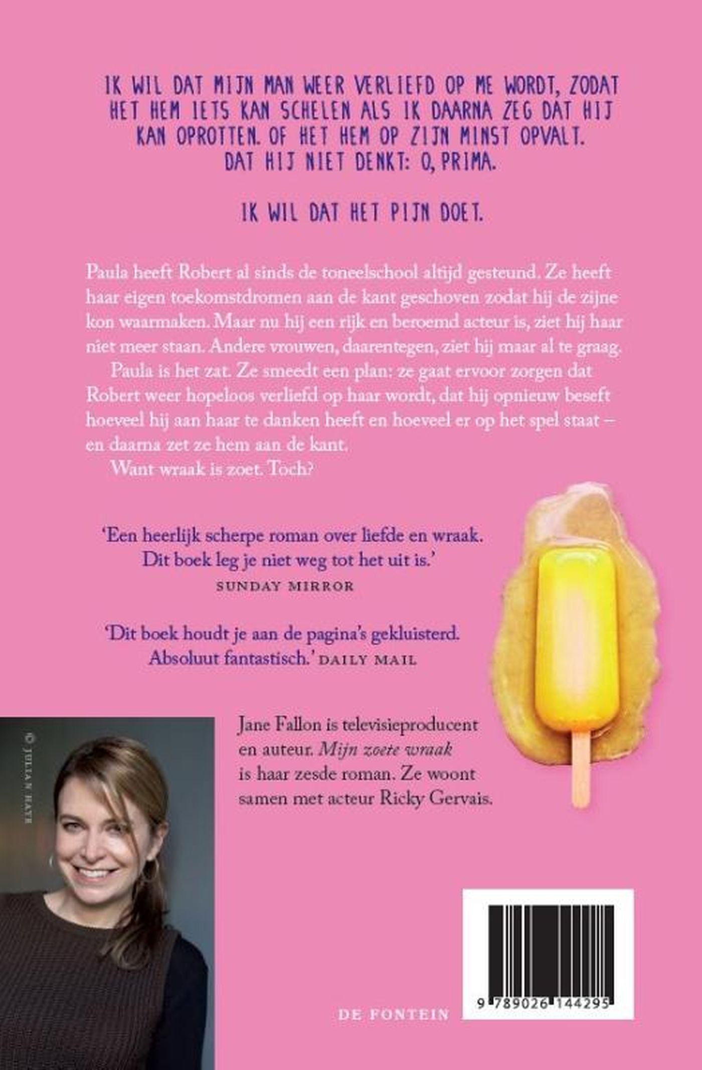 Jane Fallon is televisieproducent en auteur. 'Mijn zoete wraak' is haar zesde roman. Ze woont samen met acteur Ricky Gervais.