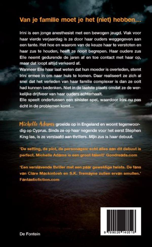 Michelle Adams groeide op in Engeland en woont tegenwoordig op Cyprus. Sinds ze op haar negende voor het eerst Stephen King las, is ze verslaafd aan thrillers. Mijn zus is haar debuut.