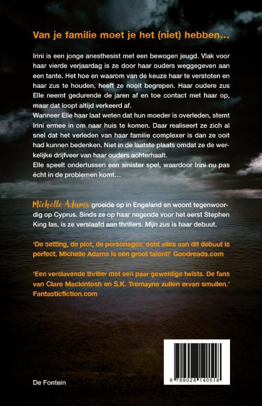 Michelle Adams groeide op in Engeland en woont tegenwoordig op Cyprus. Sinds ze op haar negende voor het eerst Stephen King las, is ze verslaafd aan thrillers. Mijn zus is haar debuut.