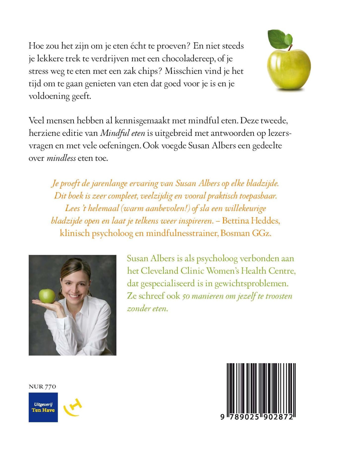 Slechte eetgewoonten verdrijven een gevoel of een stemming. Maar we vragen ons nooit af of die chocola nu werkelijk heeft geholpen: de ratio laat het afweten. En dus blijven we blindelings naar de snoeptrommel grijpen, zodra bepaalde stemmingen of gevoelens zich aandienen. Susan Albers stelt hier mindful eten tegenover: je bent je bewust van wat er voor en na het eten in je geest gebeurt. Zo kun je de innerlijke oorzaken van je eigen eetpatroon ontdekken. Aan de hand van vragenlijsten en meditatieoefeningen kun je de diepere oorzaken opsporen van ongewenste eetpatronen.