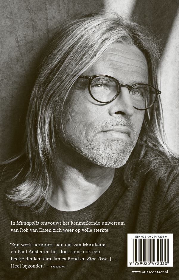 ‘Miniapolis’ is een roman waarin het kenmerkende universum van Rob van Essen zich weer op volle sterkte ontvouwt – vervreemdend maar altijd menselijk, melancholisch maar nooit zonder humor. Zeggen ze niet altijd dat de reis belangrijker is dan de bestemming? Misschien is dat zo. Maar soms heeft de bestemming het laatste woord. De moeder van Jonathan is vier jaar geleden overleden. Toch ziet hij haar op een ochtend in de tram. Hij neemt haar mee de stad uit, op zoek naar het landhuis waar ze is opgegroeid en waarover ze vreemde verhalen vertelt. Ondertussen werken Scherpenzeel en Wildervanck, twee collega’s op een bijkantoor van een gemeentelijke dienst, aan hun eigen ontsnapping. Ook zij verlaten de stad, per fiets, zonder te weten waarnaar ze op weg zijn. Geplaagd door demonen uit het verleden, wederzijds ongemak en tijdelijke vlagen onverwoestbaar optimisme komen deze vier mensen uiteindelijk niet alleen elkaar, maar ook zichzelf tegen.