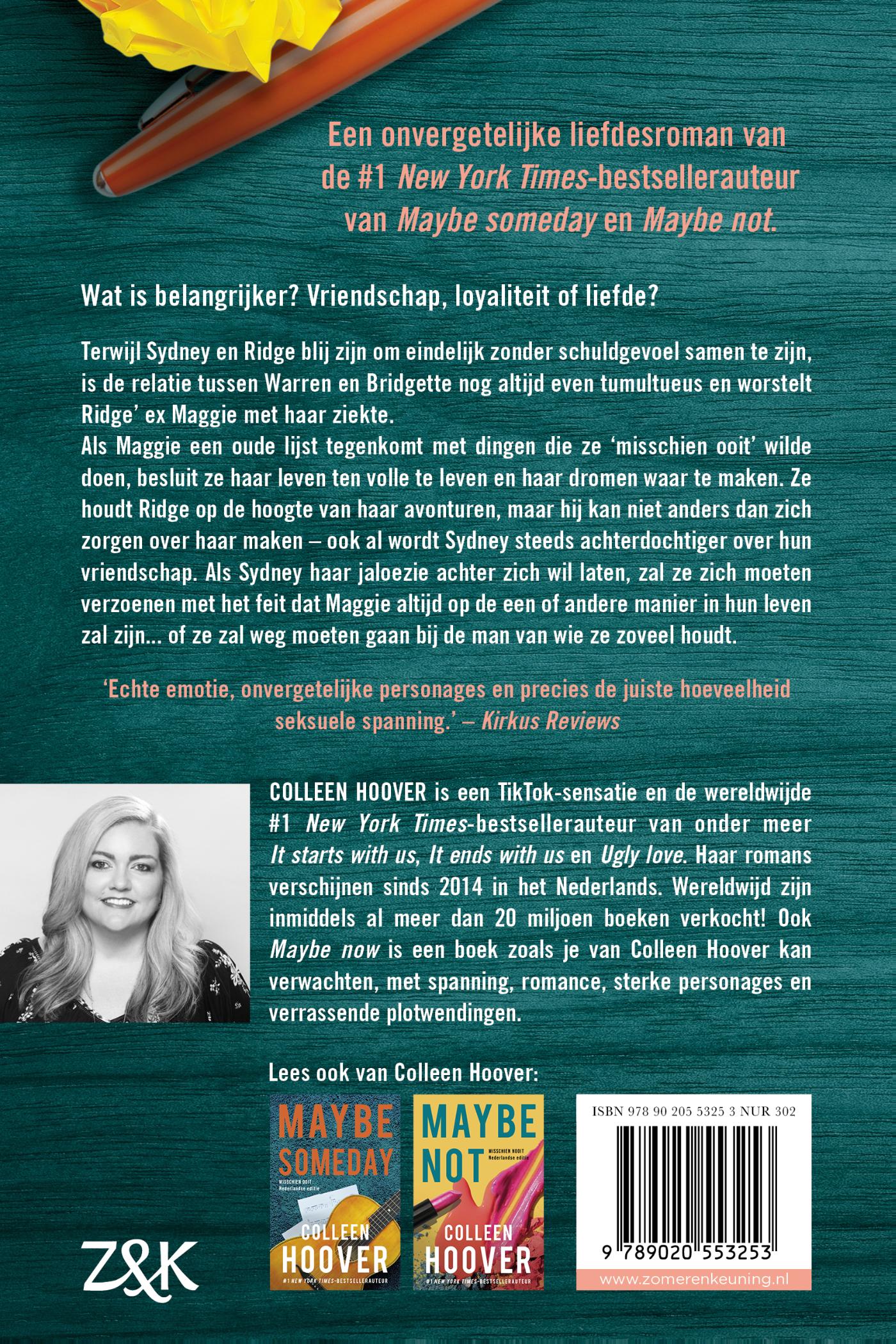 'Maybe now' is het langverwachte derde deel in de Maybe-serie van Colleen Hoover, de internationale bestsellerauteur van 'Maybe someday' en 'Maybe not'.