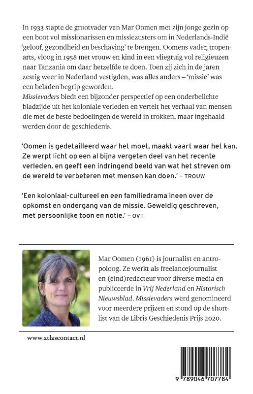 In ‘Missievaders’ biedt Mar Oomen een bijzonder perspectief op een onderbelichte bladzijde uit de koloniale geschiedenis: de hoogtijdagen van de katholieke missie. In 1933 stapte de grootvader van Oomen met zijn gezin op een boot vol missionarissen en missiezusters naar Nederlands-Indië. Hij was een van de velen die eropuit gingen met de intentie de wereld te verbeteren. Vlak voor en na de Tweede Wereldoorlog leverde Nederland verhoudingsgewijs de meeste missionarissen ter wereld. Behalve kerken en scholen bouwden ze ziekenhuizen en zorgden ze voor zieken en gewonden. Oomens vader, tropenarts, vloog in 1958 met vrouw en kind in een vliegtuig vol religieuzen naar Tanzania om daar hetzelfde te doen. Toen zij zich in de jaren zestig weer in Nederland vestigden, was alles anders. ‘Missie’ was een beladen begrip geworden. Oomens familiegeschiedenis vertelt het verhaal van mensen die met de beste bedoelingen de wereld in trokken maar ingehaald werden door de geschiedenis.