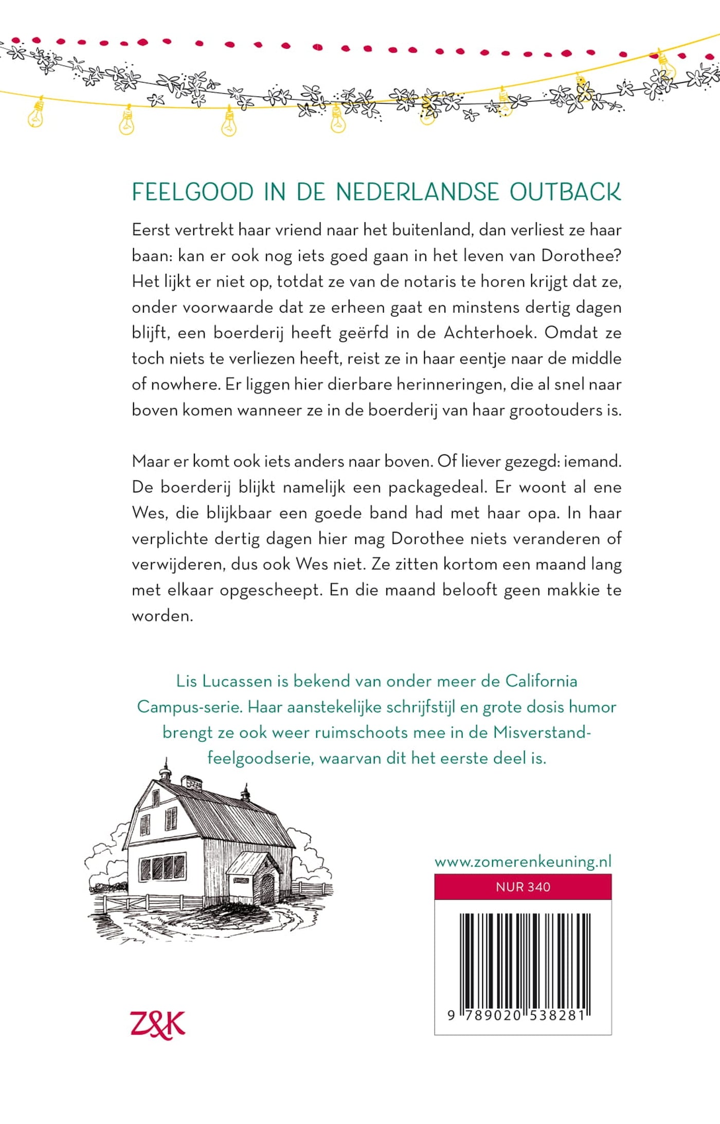 'Misverstand in de middle of nowhere' van Lis Lucassen gaat over Dorothee, die de boerderij van haar opa erft in de Achterhoek. Ze is net haar baan kwijt en haar relatie is uit, dus de dertig dagen die ze er volgens de notaris van haar opa moet doorbrengen, zijn geen probleem. Totdat ze erachter komt dat er al iemand in die boerderij woont. En dat die iemand echt heel leuk en aantrekkelijk is. Terwijl zij en Wes een maand lang op elkaars lip zitten en allerlei dorpsbewoners zich met haar leven komen bemoeien, moet Dorothee ook nog een plan maken voor ná die maand. Ze begint een bakvlog waarin ze recepten van haar oma klaarmaakt, tot groot vermaak van Wes. Met dit eerste deel van een nieuwe feelgoodserie slingert Lis Lucassen niet alleen haar hoofdpersoon, maar ook de lezer naar de middle of nowhere. Een roman om van te smullen.
