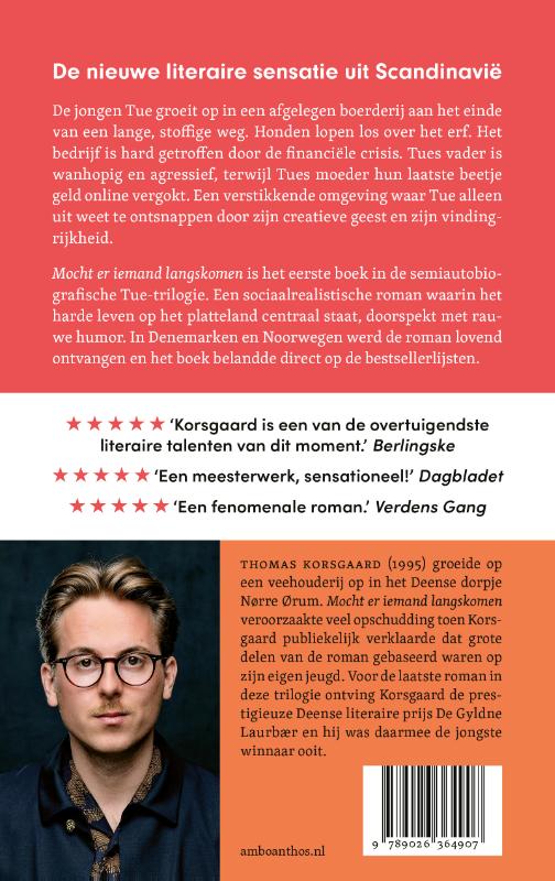 Als er iemand langs zou komen is het eerste boek in de semi-autobiografische Tue-trilogie, die in Denemarken en Noorwegen lovend werd ontvangen door zowel pers als publiek. Een sociaalrealistische roman waarin het harde leven op het platteland centraal staat, doorspekt met rauwe humor.