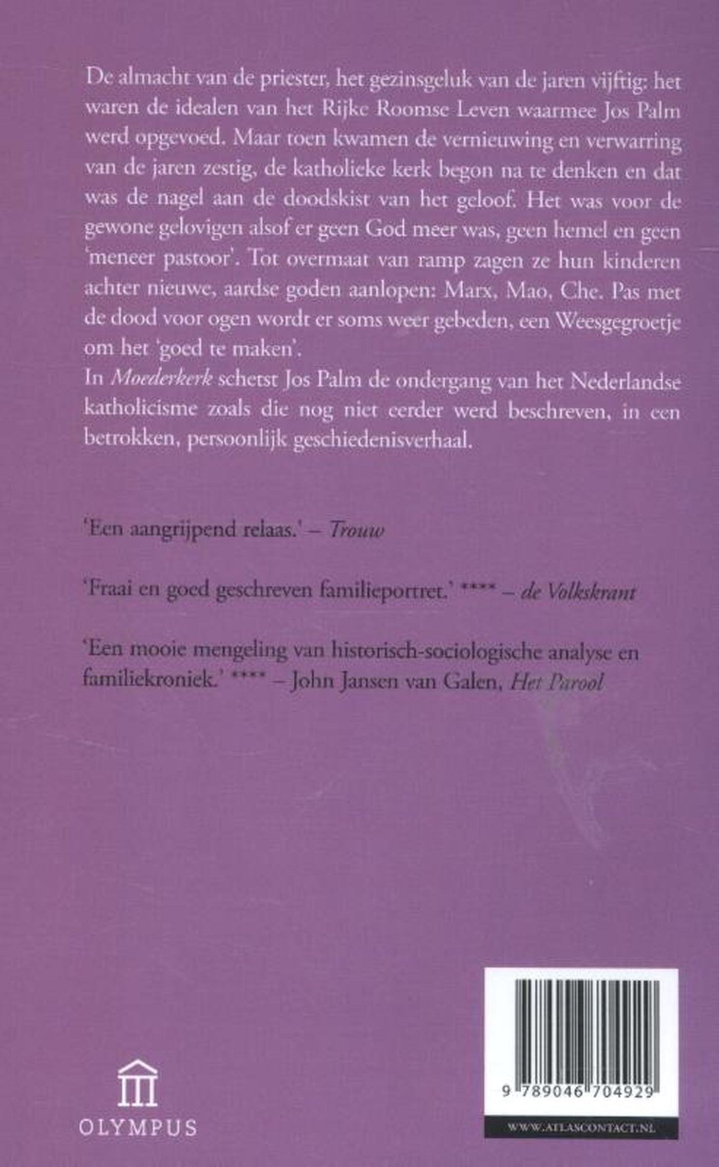 De almacht van de priester, het gezinsgeluk van de jaren vijftig: het waren de idealen van het Rijke Roomse Leven waarmee Jos Palm werd opgevoed. Maar toen kwamen de vernieuwing en verwarring van de jaren zestig, de katholieke kerk begon na te denken en dat was de nagel aan de doodskist van het geloof. Het was voor de gewone gelovigen alsof er geen God meer was, geen hemel en geen ‘meneer pastoor’. Tot overmaat van ramp zagen ze hun kinderen achter nieuwe, aardse goden aanlopen.