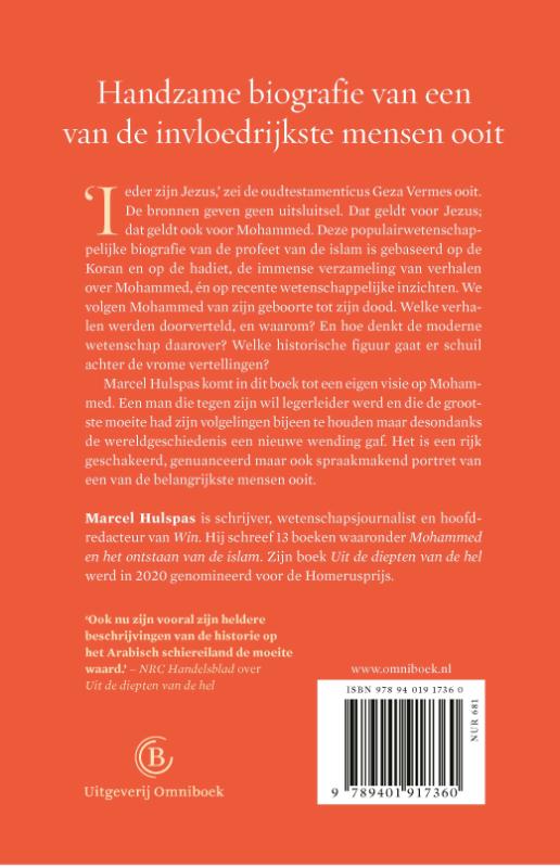‘Mohammed’ van Marcel Hulspas is de eerste handzame, populair-wetenschappelijke biografie van de grondlegger van de islam. Hoe is het beeld van Mohammed ontstaan? In dit boek volgen we hem van zijn geboorte tot zijn dood. De auteur baseert zich op de Koran, op de vele verhalen over Mohammed én op recente wetenschappelijke inzichten. Welke verhalen werden er doorverteld? Welke historische feiten liggen daarachter verscholen? Zo komt Marcel Hulspas in dit boek tot zijn eigen visie op Mohammed en biedt een rijk geschakeerd, genuanceerd maar ook onverwacht beeld van het leven van een van de belangrijkste mensen ooit.